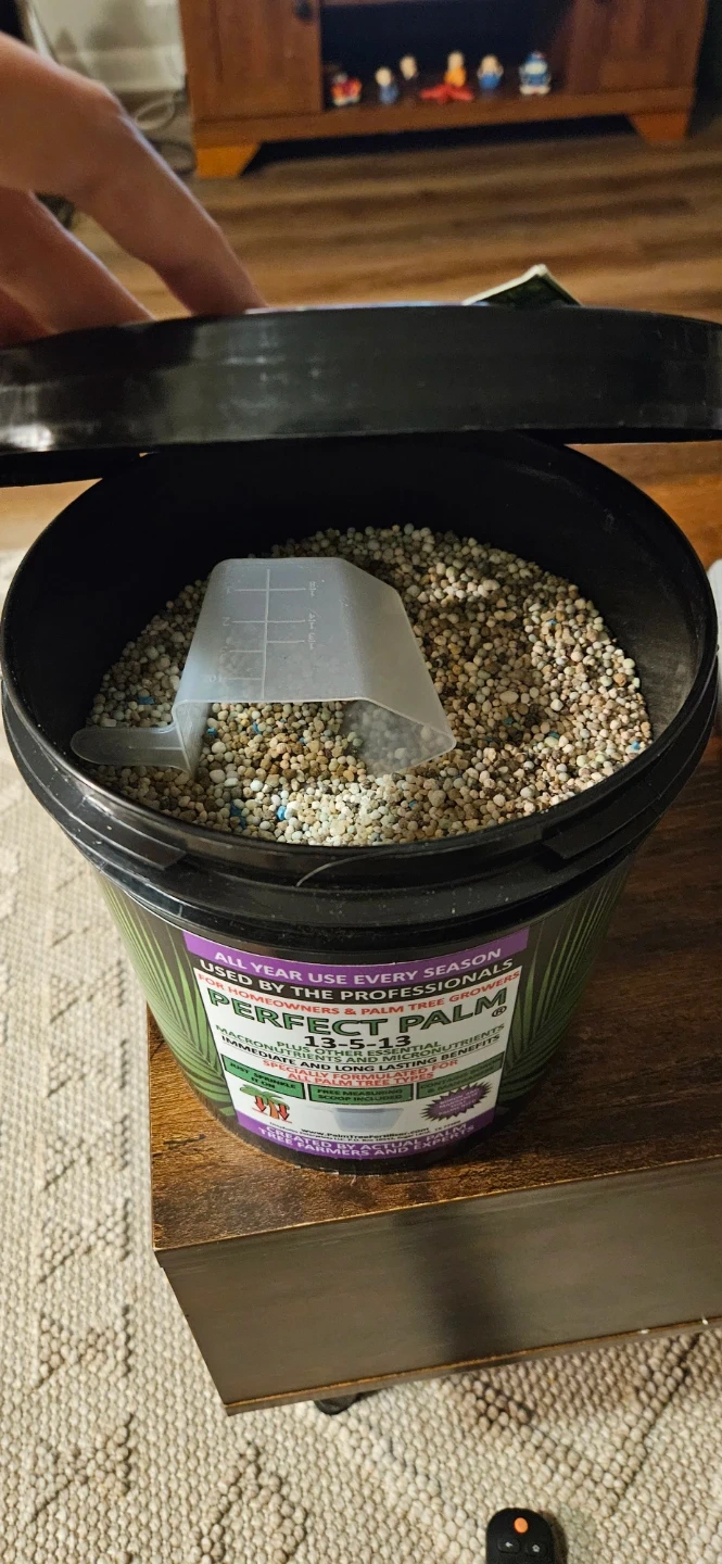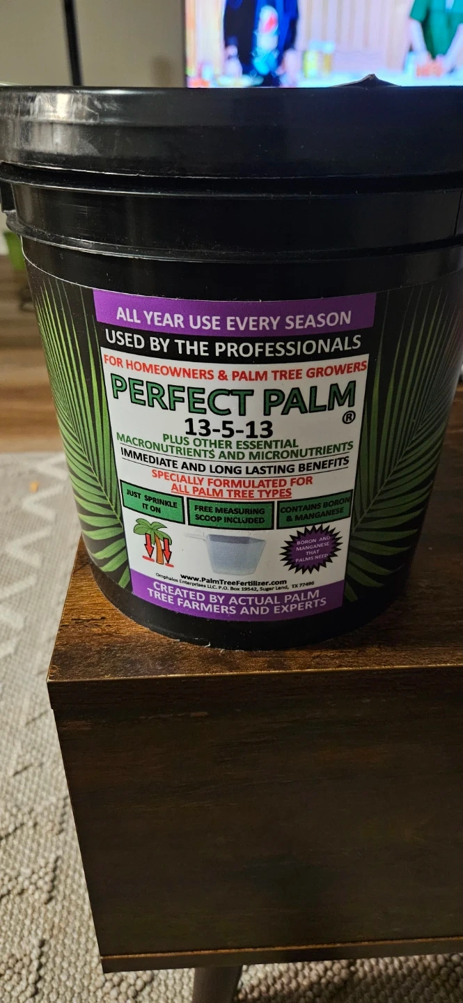 I'm selling a bucket of Perfect Palm fertilizer. It's formulated specially for all palm tree types.
