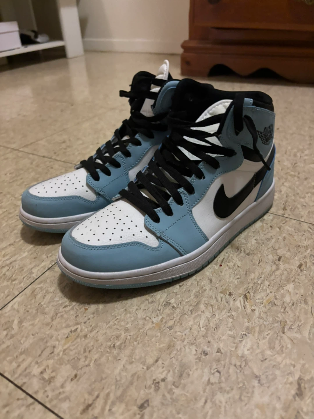 Selling a pair of Nike Air Jordan 1 High OG in the University Blue colourway! Classic and stylish, these shoes are in great condition and ready for a new home. Perfect for any sneakerhead or anyone looking to add a cool pair of kicks to their wardrobe