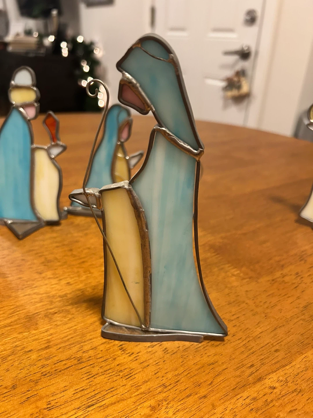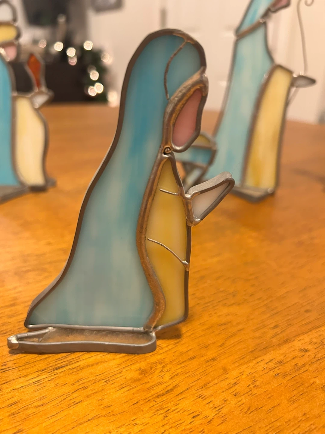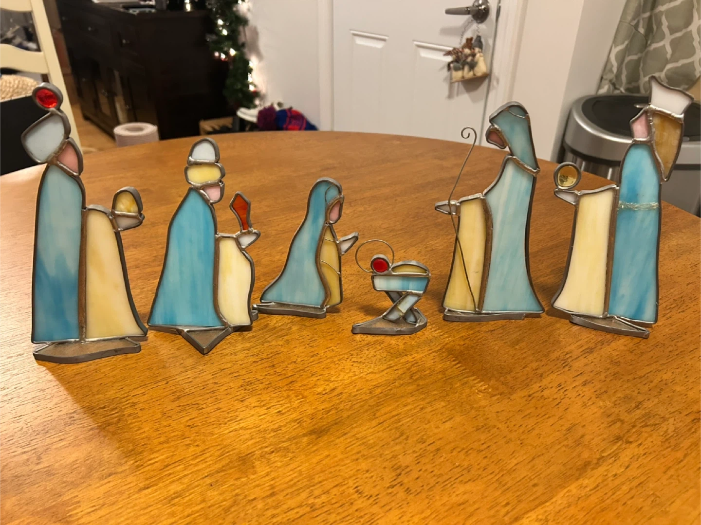 80’s Vintage Stained Glass 6 Piece Nativity Scene 2 pieces have had to be glued in the past but otherwise in good shape. Pickup in Astoria, Queens