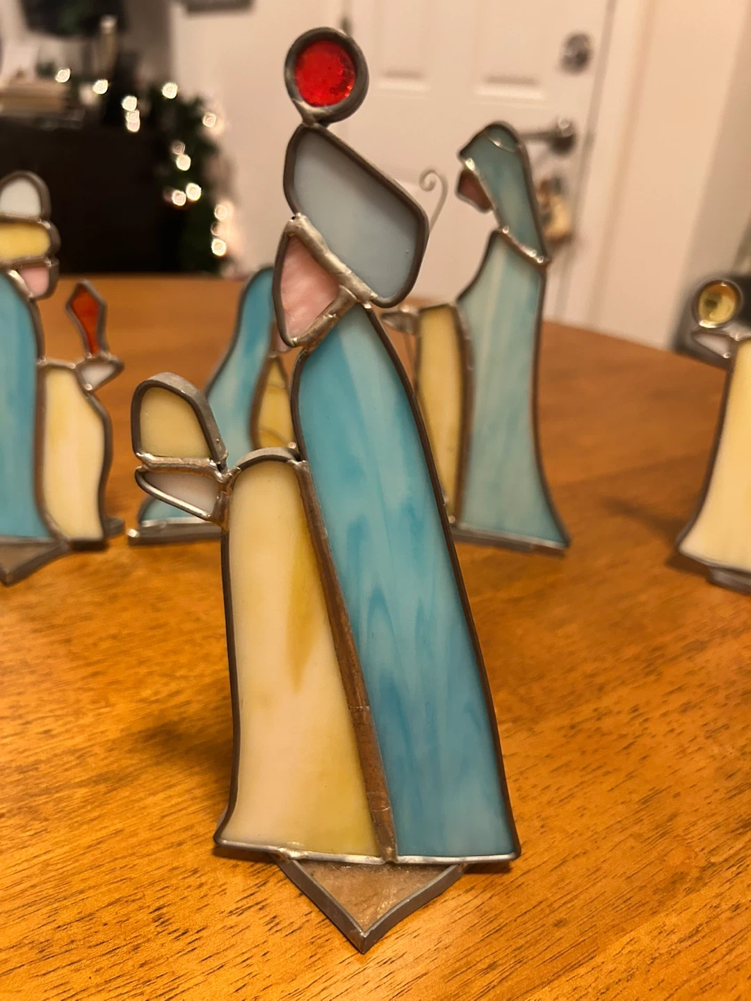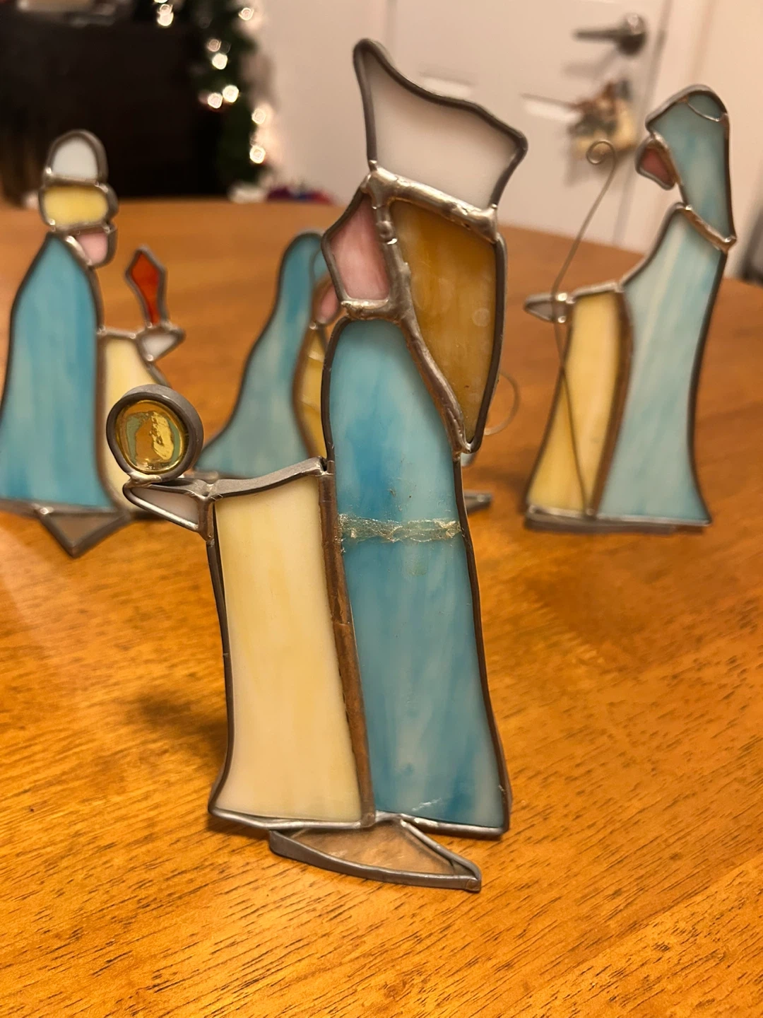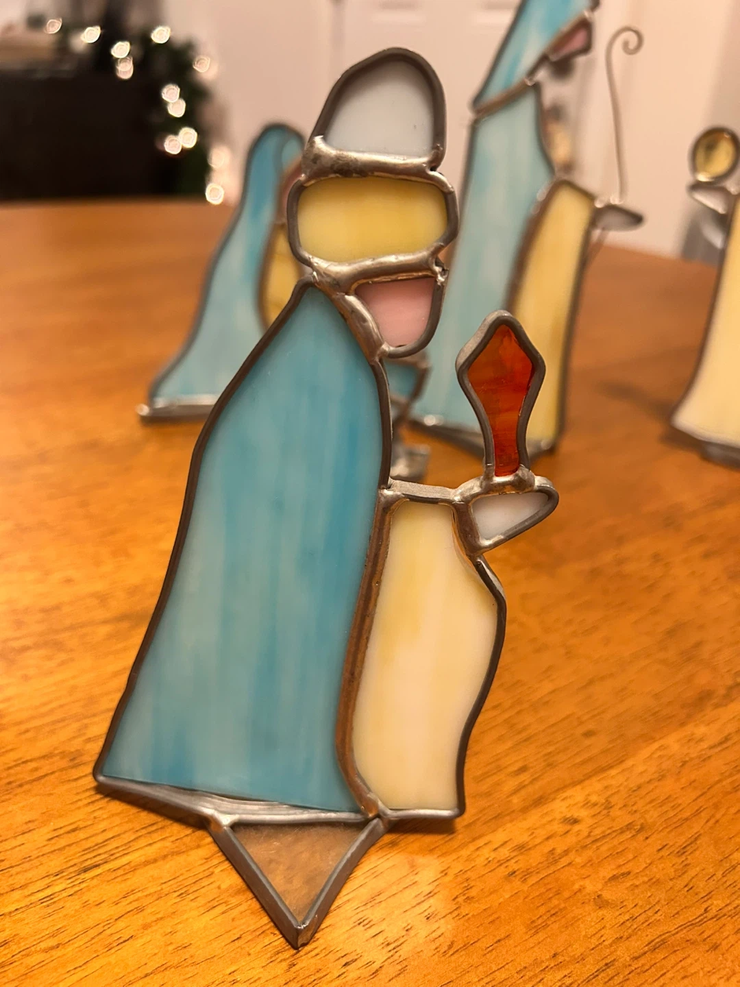 80’s Vintage Stained Glass 6 Piece Nativity Scene 2 pieces have had to be glued in the past but otherwise in good shape. Pickup in Astoria, Queens