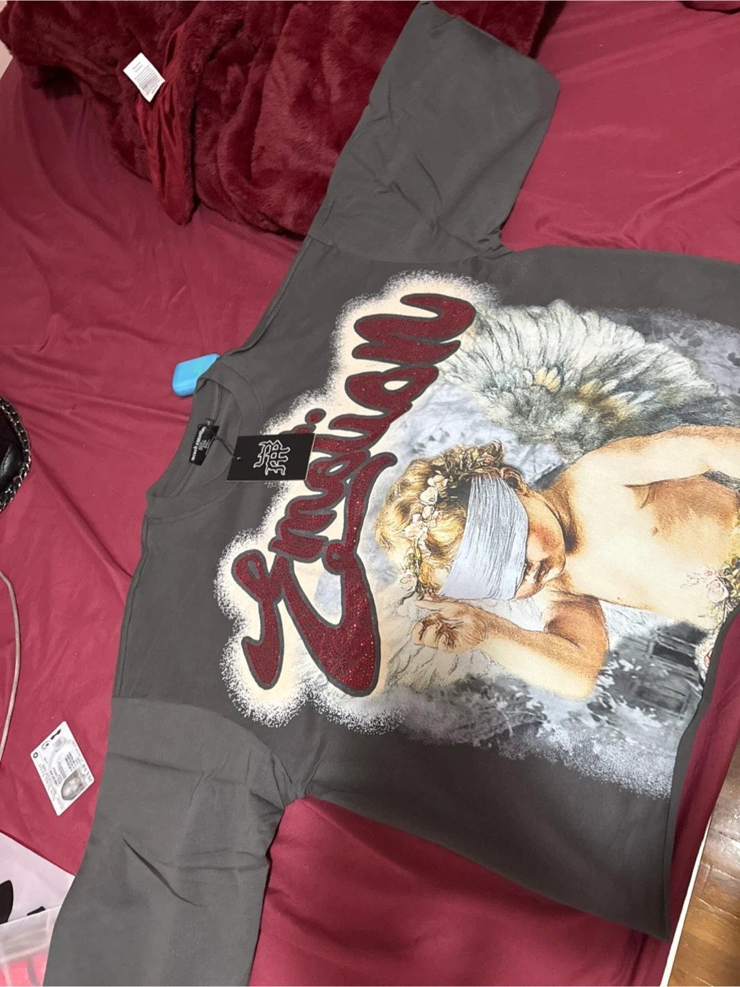 Here's a Mariano gray hoodie with a unique graphic design. It's new and ready for a new owner!