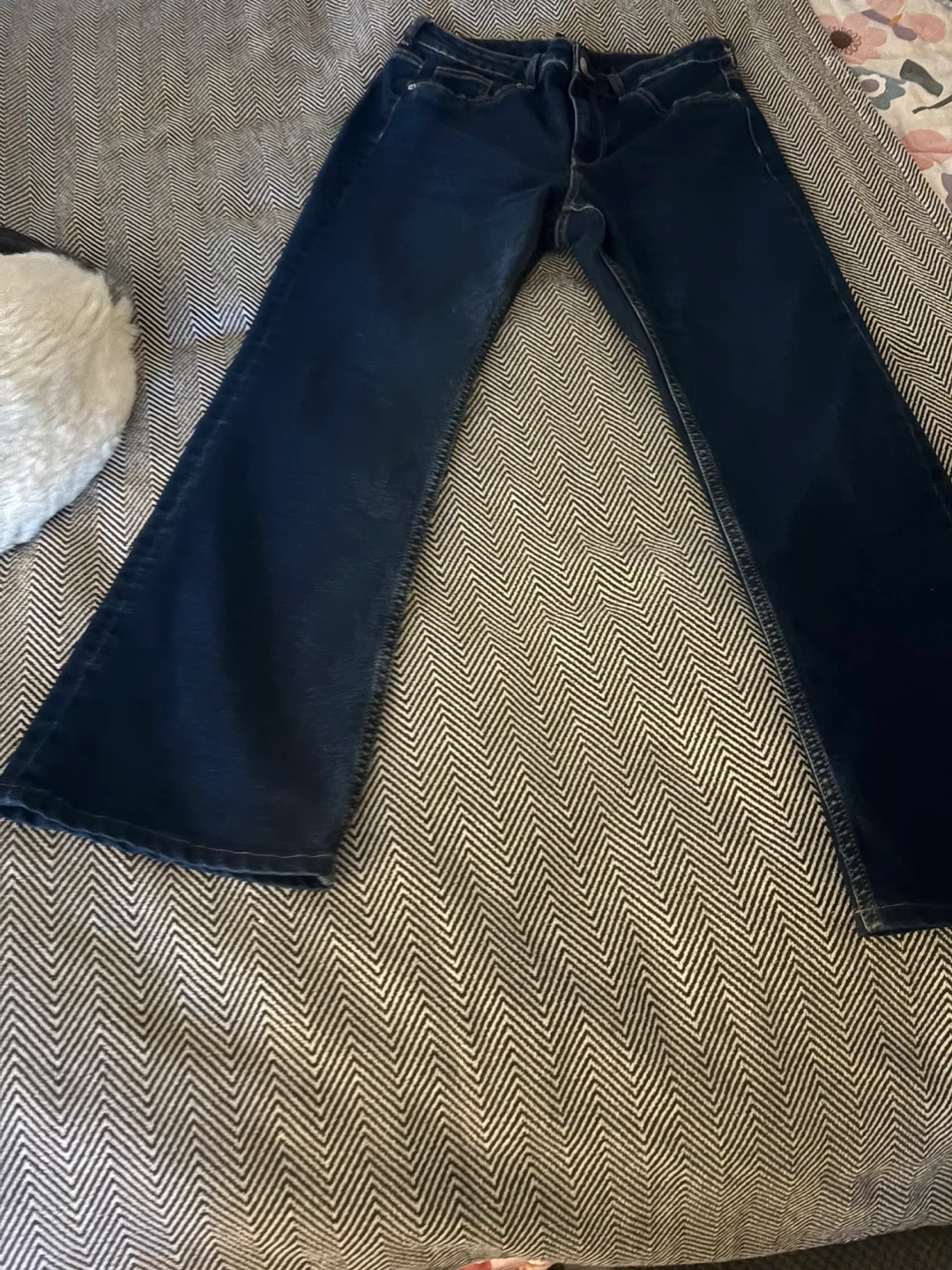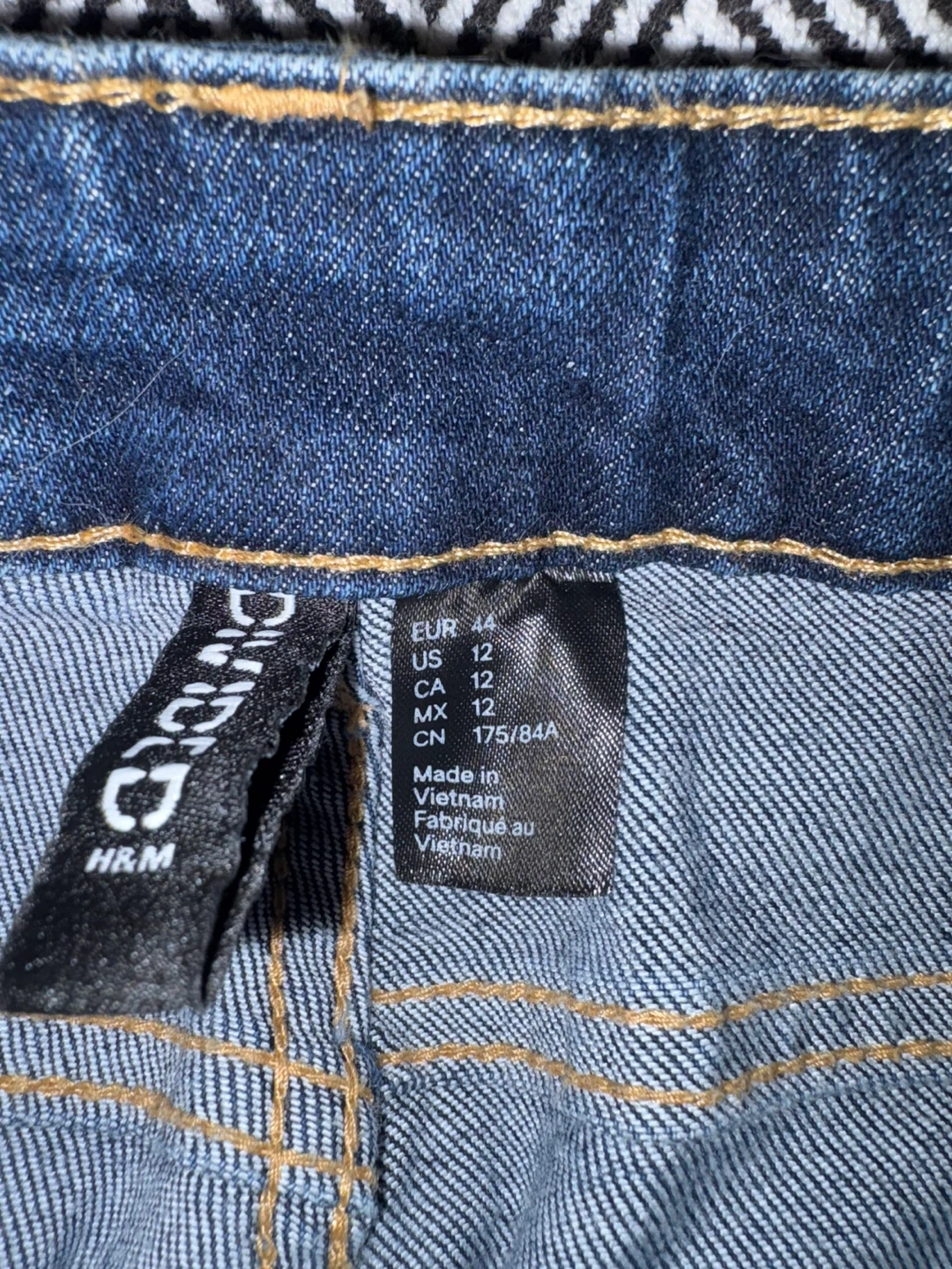 Selling a pair of H&M dark blue jeans in size 12. They're in great shape and ready for a new owner. The material is durable and comfortable, perfect for everyday wear!