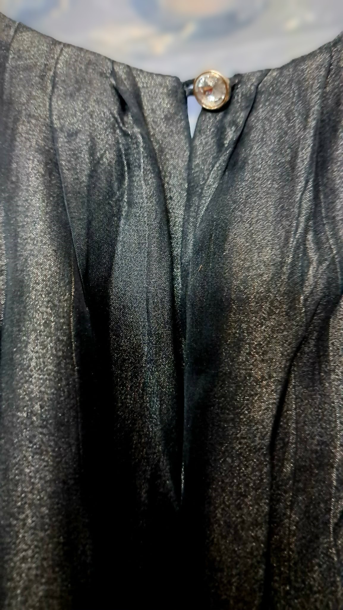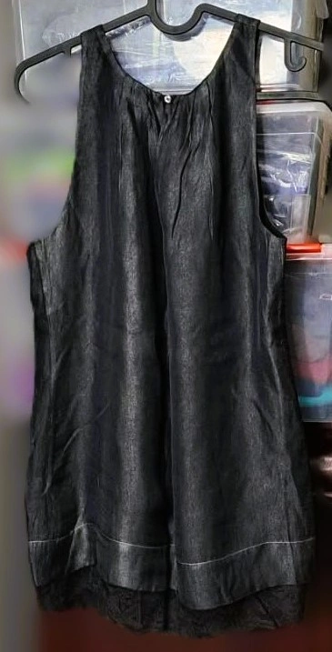 This beautiful Marciano Black Sleeveless Silk Top features pleating around the neckline and a contrasting lace trim along the bottom hem made of 100% silk to achieve the shimmer and drape. It has a single decorative button and loop closure at the back of the neck. An elegant top for formal, or cocktail style suitable for evening wear or parties. A Marciano is a women's apparel brand that is part of Guess, Inc. In excellent condition. Well kept and cared for beautifully.