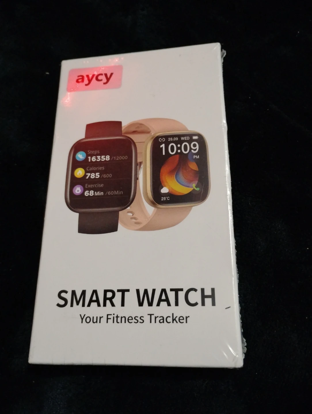 Selling a brand new AYCY Smart Watch. It's still in its original packaging! This fitness tracker can count your steps, calories, and exercise time. It displays the time and date, and even the temperature!