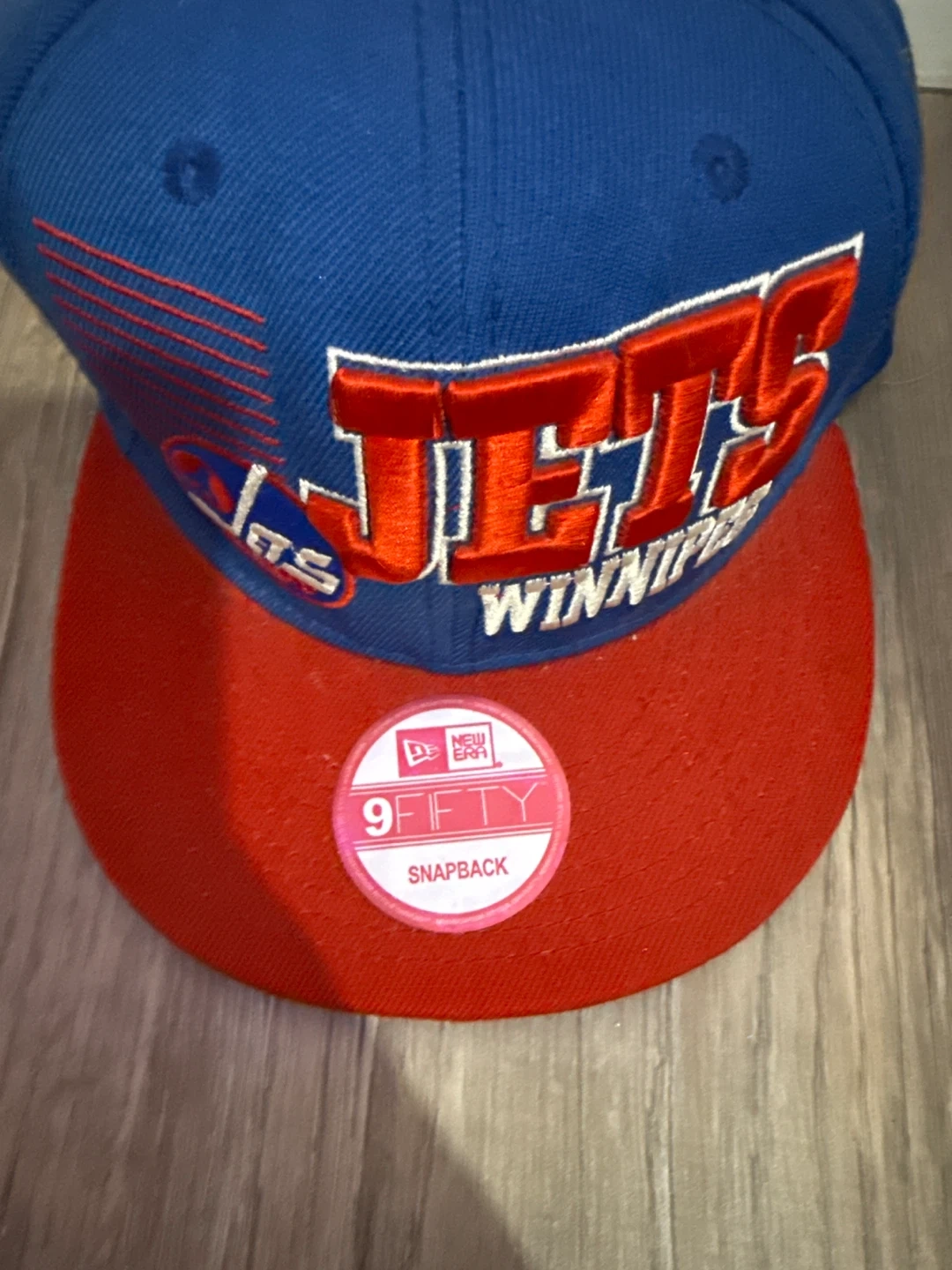 Selling a Winnipeg Jets New Era 9FIFTY snapback hat! It's in great condition and features the classic Jets logo. The hat is a snapback, making it easily adjustable for a comfortable fit. Perfect for any Jets fan!