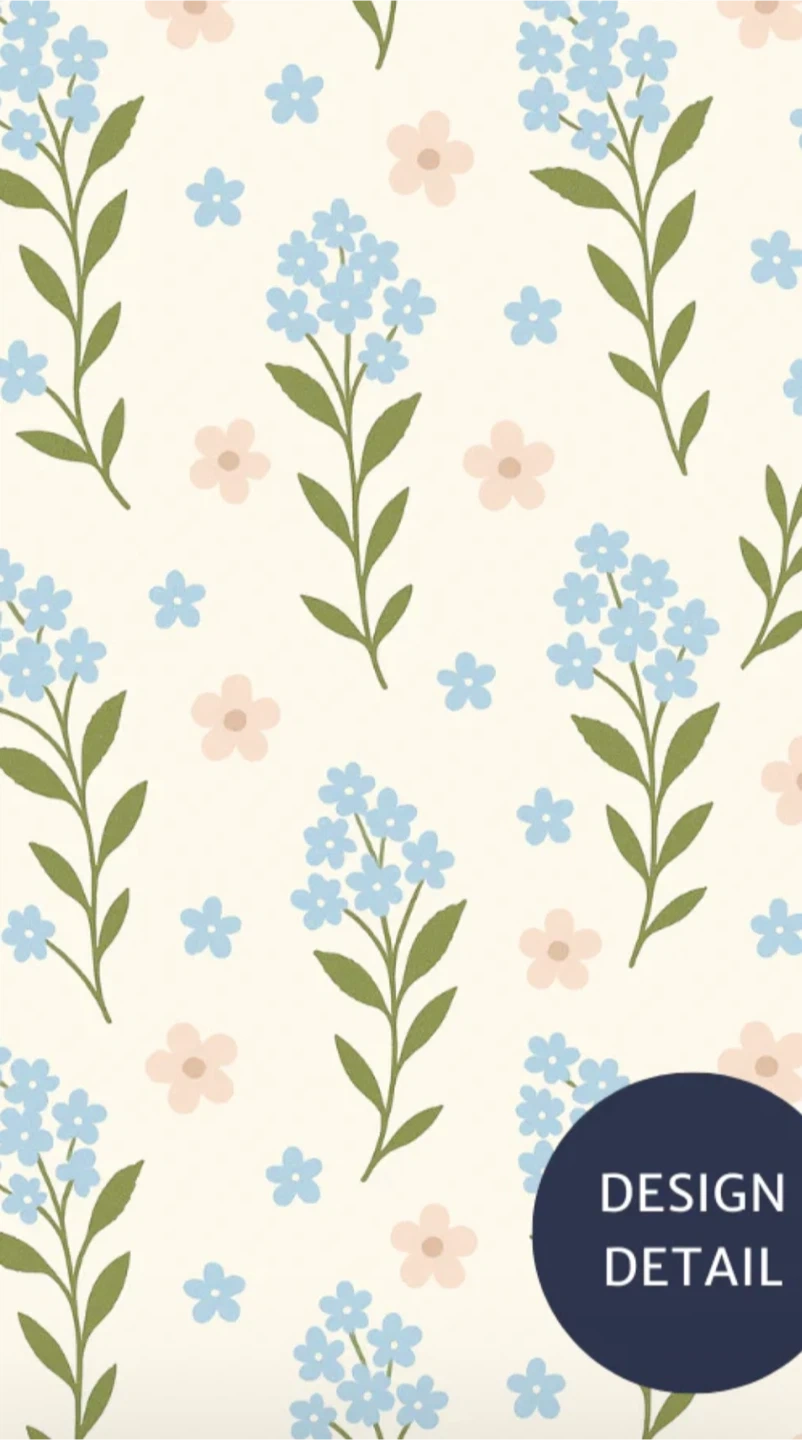 - Color: White with blue and pink floral pattern