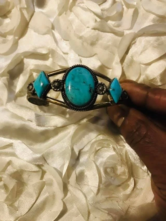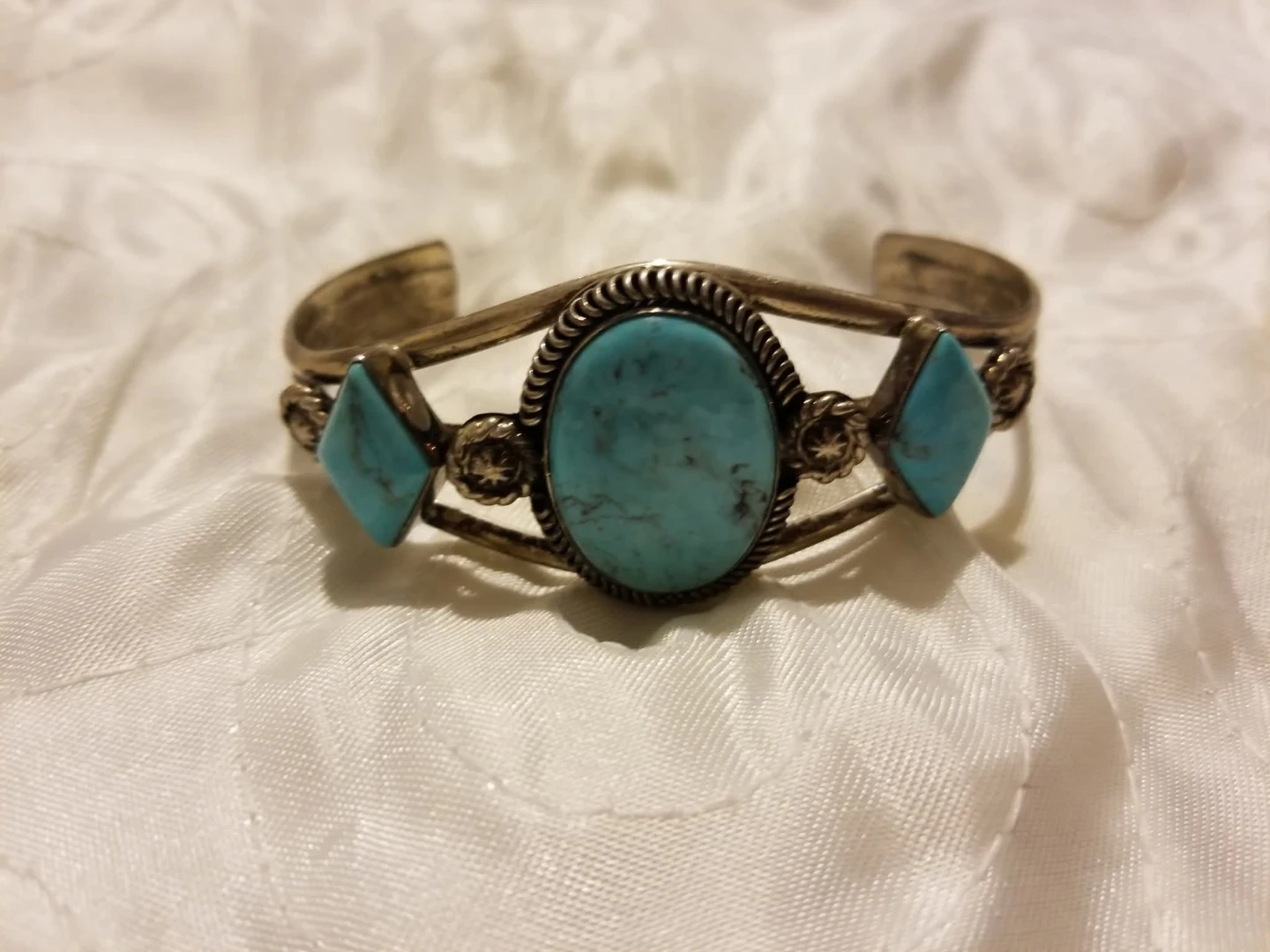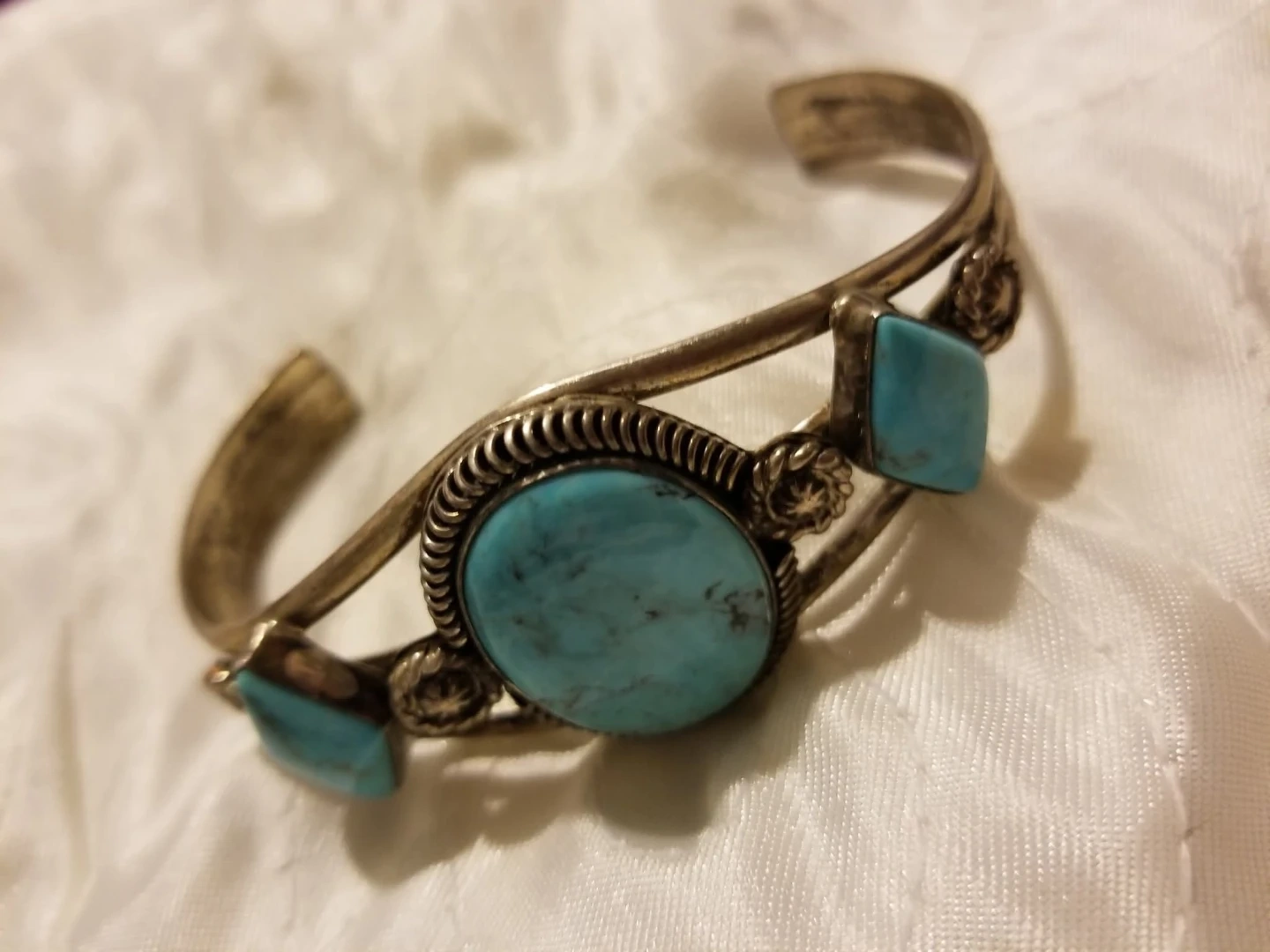 #Cleanout Turquoise Stone Cuff Bracelet Sterling silver Native
