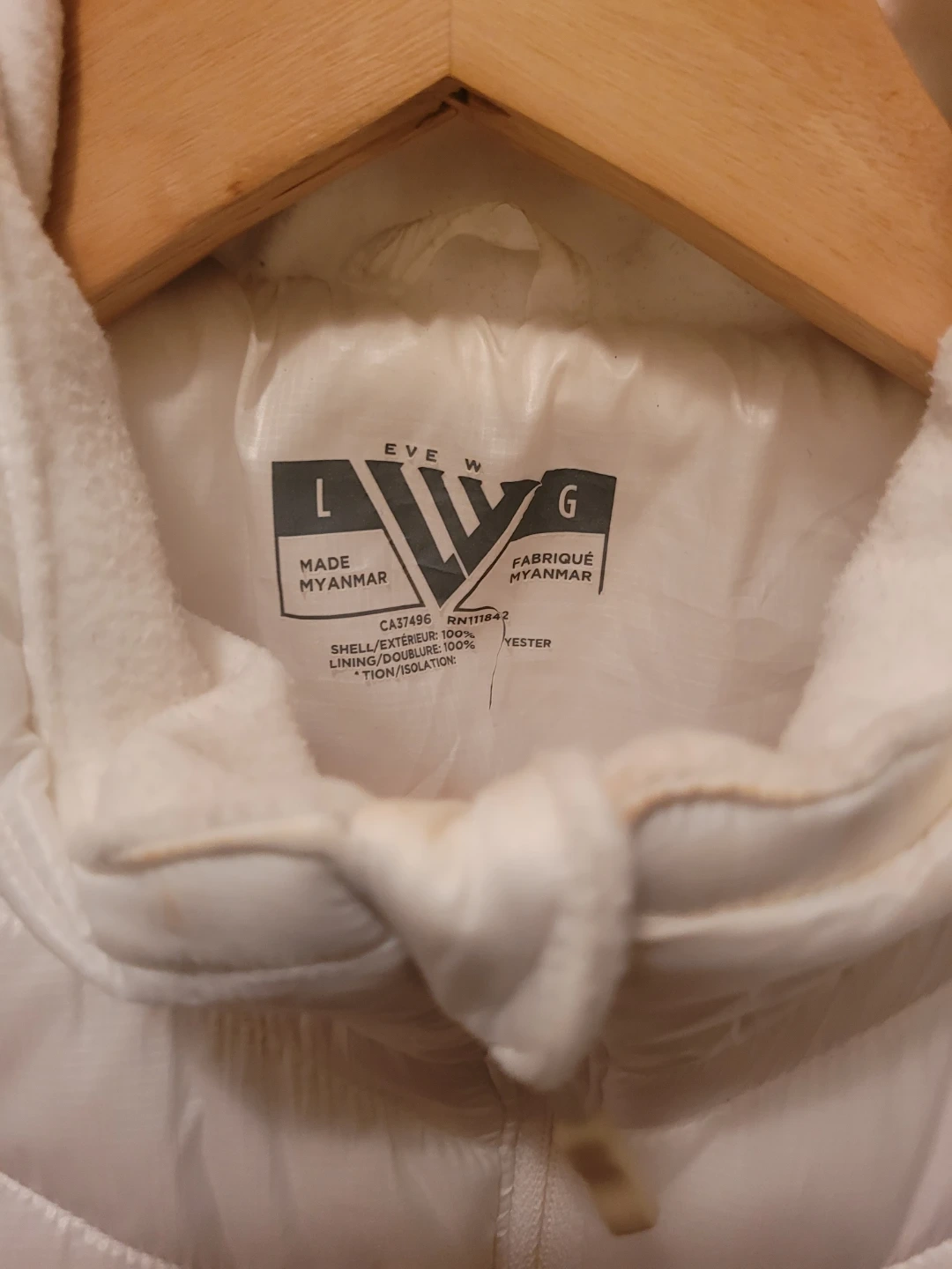 Selling a lovely white Eve puffer jacket in size large! It's in great condition and perfect for those chilly days. The shell and exterior are 100% polyester, and the lining and closure are also 100% polyester. It's lightweight and comfortable