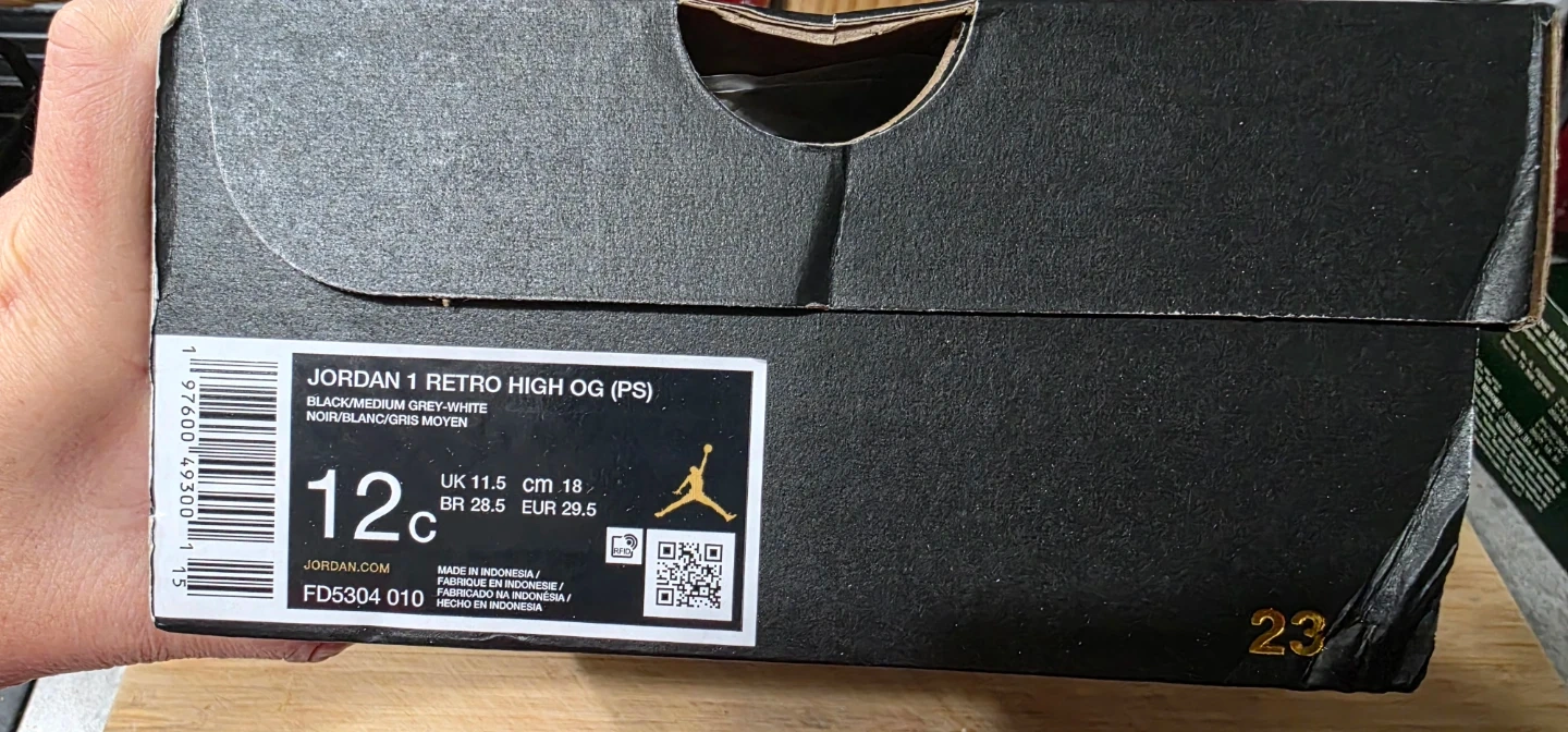 Jordan 1 Retro High OG (PS) Black/Medium Grey - Size 12c