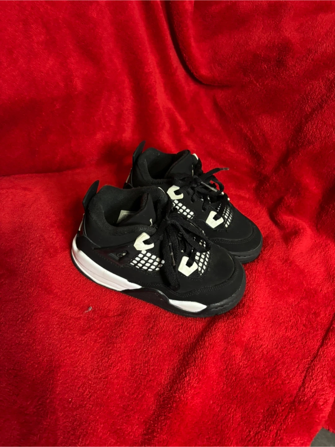 Selling a pair of Jordan 4 Retro Black Cat toddler shoes! They're in great condition and ready for a new little owner. These stylish sneakers are perfect for your little one's adventures.