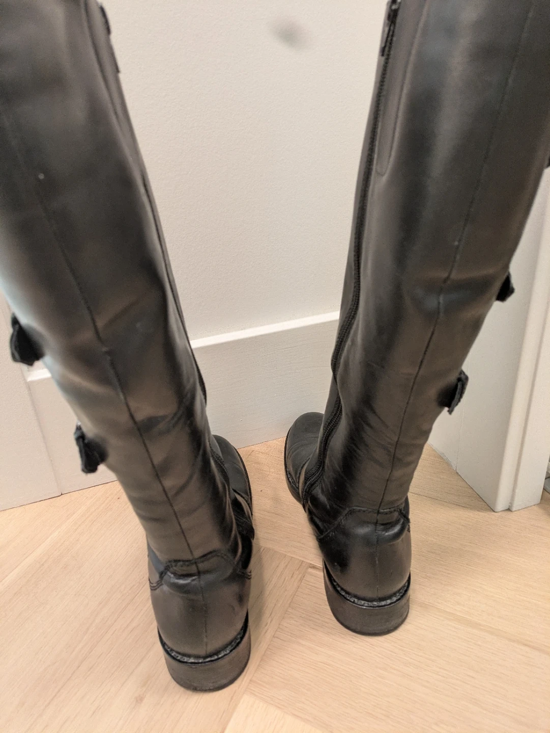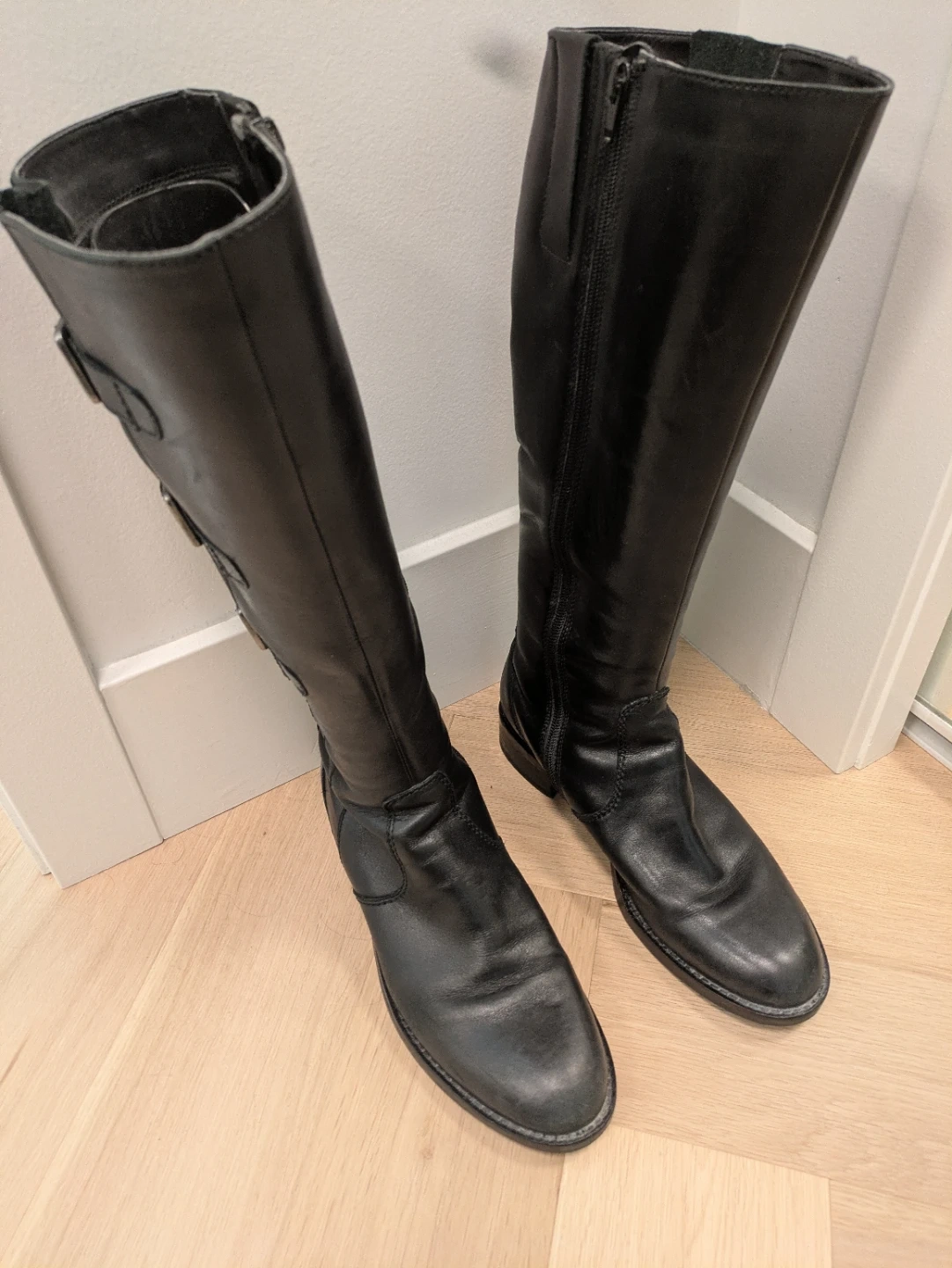 Buy & SellTall black leather bootsTall black leather boots$30Ecco brand. Black leather with side straps and full zipper. Size 7-1/2 or Size 38.ConditionGoodSize7.5WHERE TO MEETCheck LocationView MapSELLERverifiedJimCoal Harbour18314 reviews0 chats·2 favorites·75 viewsSEND CHAT TO SELLERHi Jim! I’m interested in your listing.Hi Jim! I’m interested in your listing.Get the Karrot app to chatSign In to chat