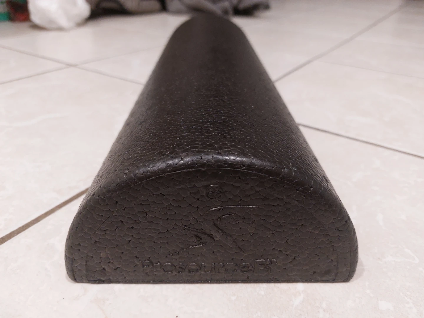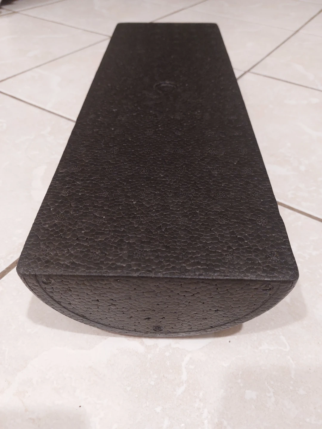 This is a ProsourceFit half-round foam roller. 18" length, 6" diameter, 3" height. Made of high density polypropylene foam, useful for self-massage and stabilization exercises.