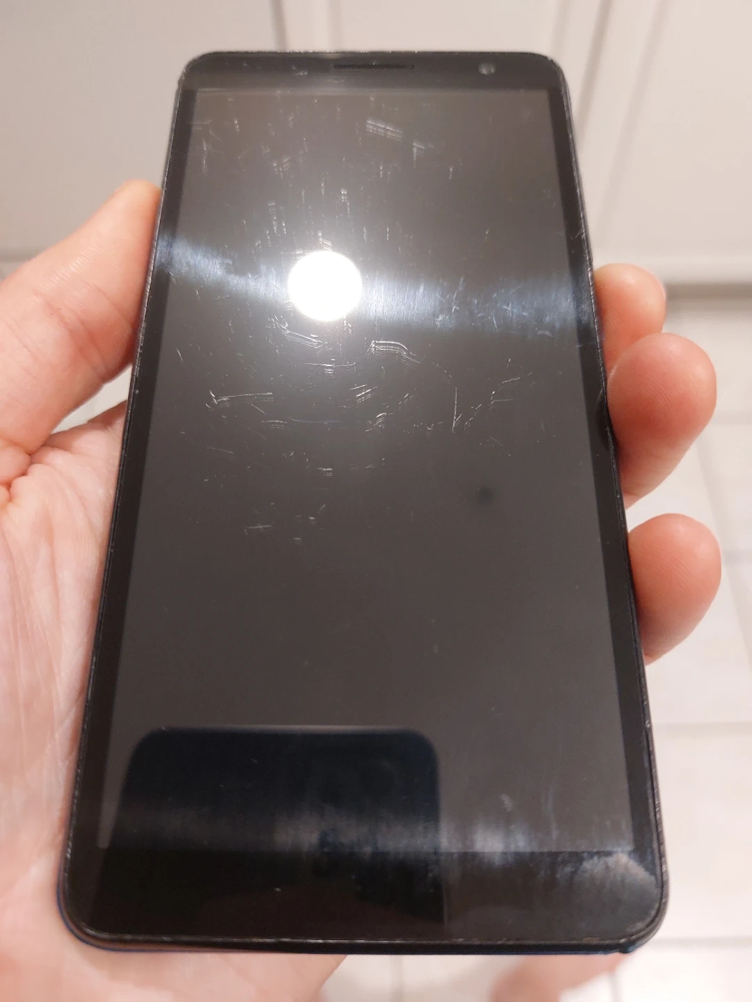 Selling a used and unlocked Alcatel 1B 5002S (2020) in blue. It runs Android Go (Version 10). It still works just fine, despite some scratches, and a few cracks in the blue replaceable back cover. There are no cracks or major damage on the touchscreen or camera lenses.