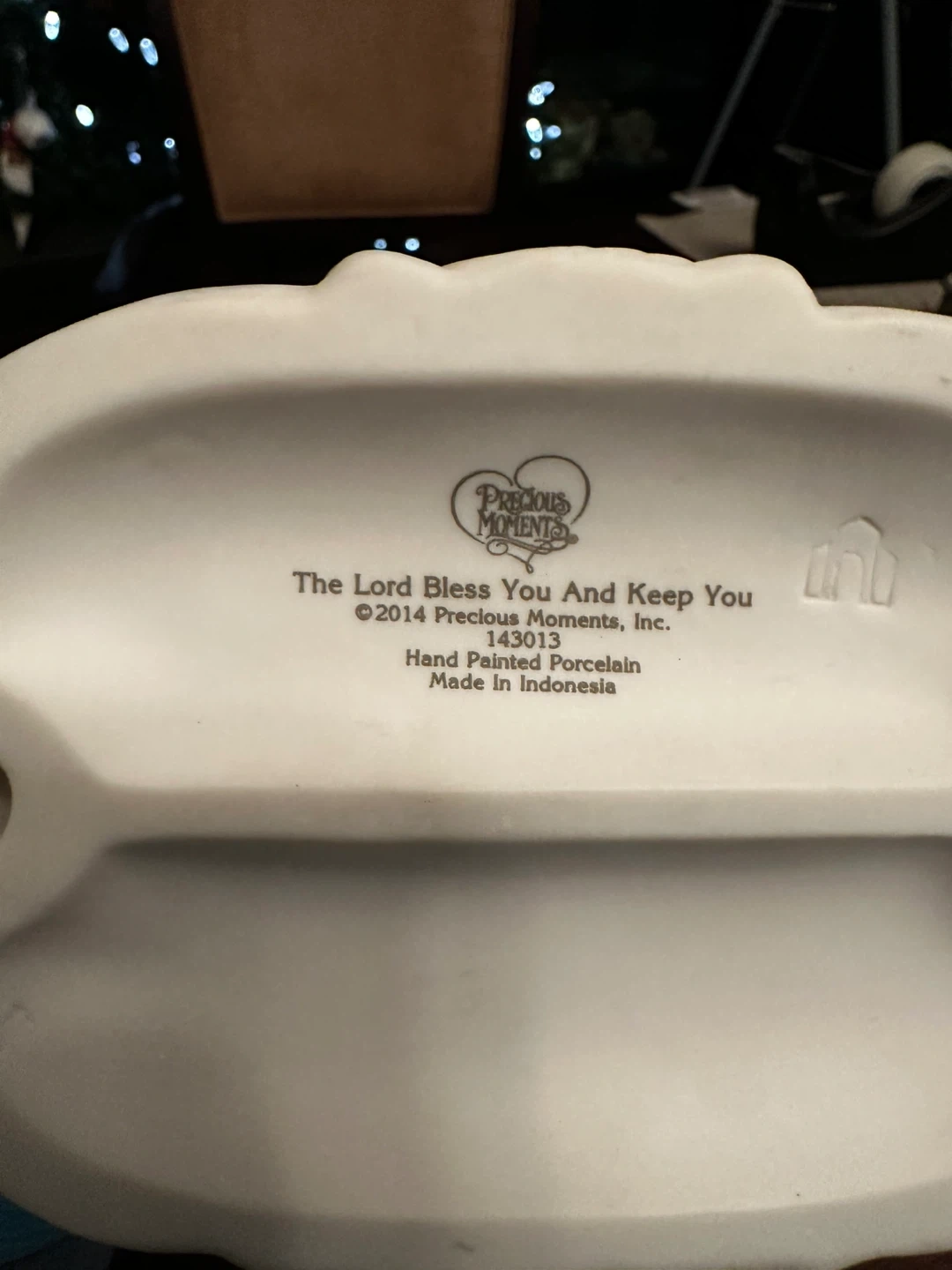 Selling a Precious Moments figurine titled "The Lord Bless You And Keep You". This hand-painted porcelain figurine was made in Indonesia in 2014. It's a lovely piece!
