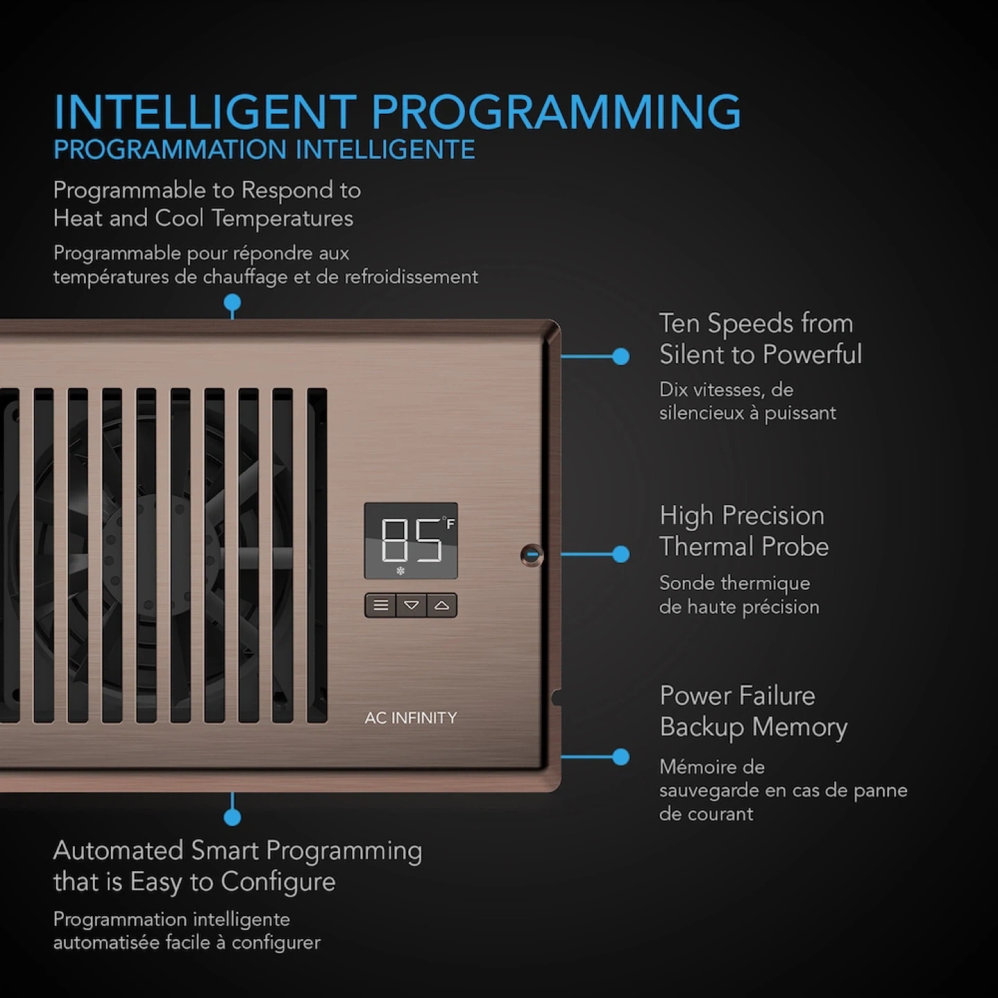 - Programmable to respond to heat and cool temperatures