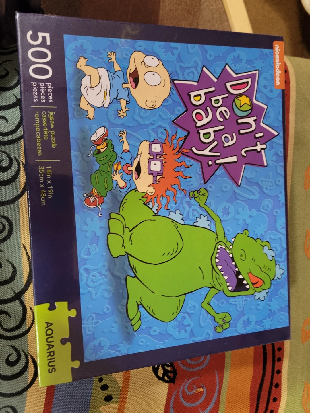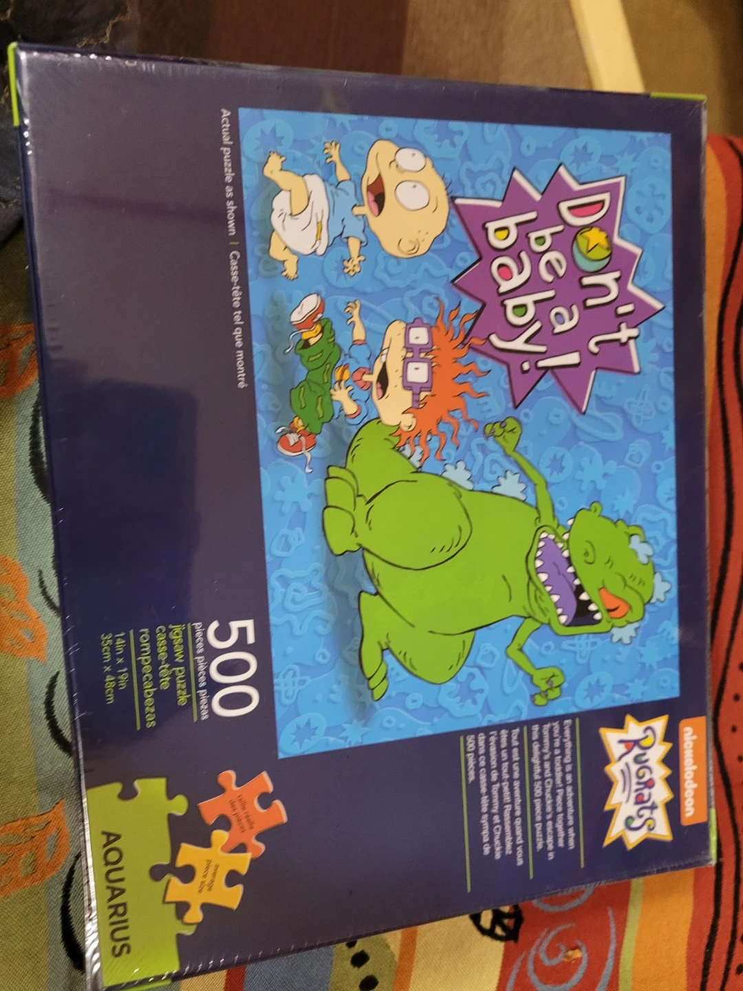 Selling a Nickelodeon Rugrats jigsaw puzzle, titled "Don't Be A Baby!" This puzzle is made by Aquarius and contains 500 pieces. The assembled puzzle measures 14in x 19in (35cm x 48cm). It's a fun activity for Rugrats fans!