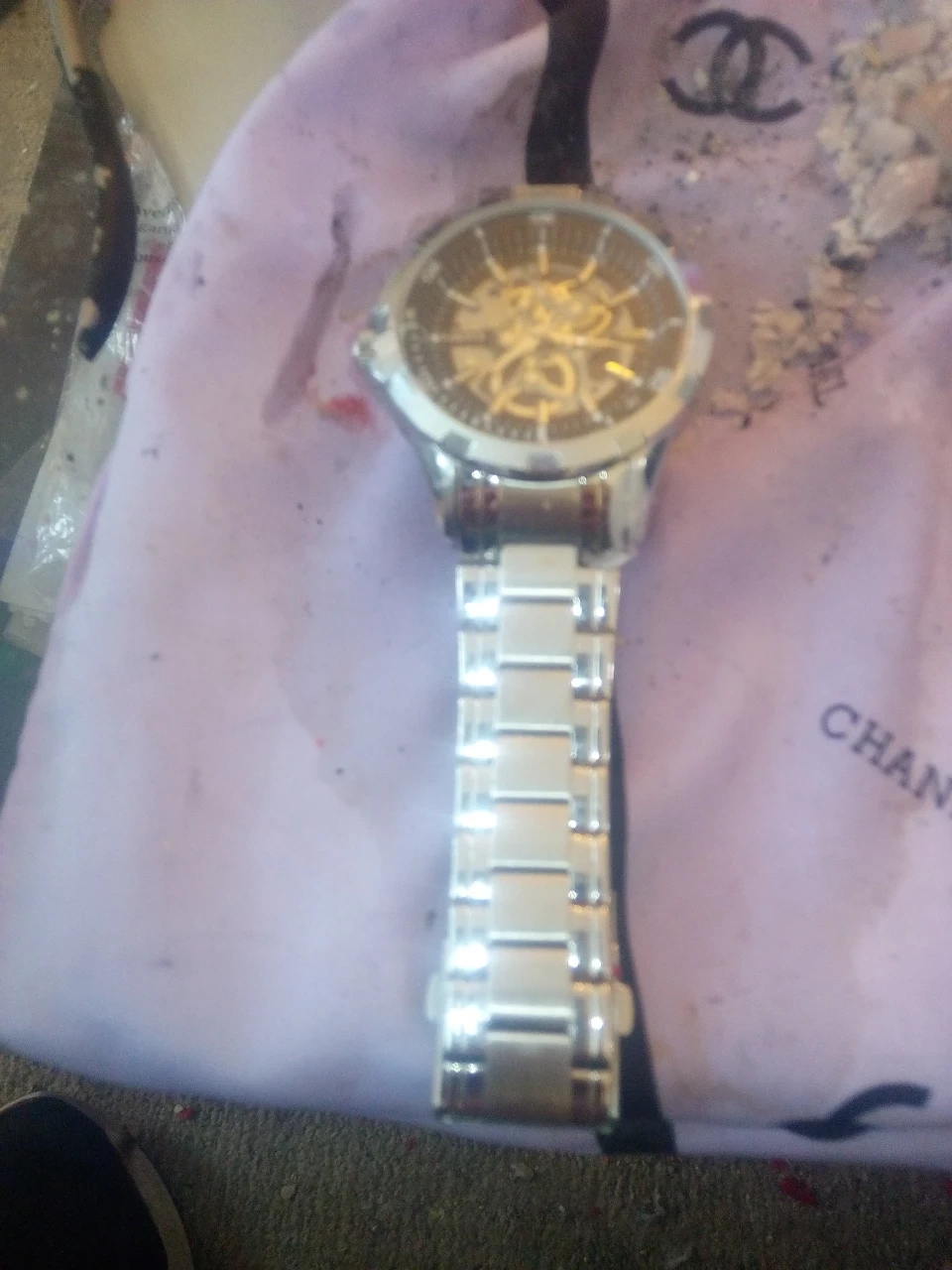 Selling a men's fashion watch. The watch has a silver band and a skeleton dial. It would be a great addition to your wardrobe! The second watch has a leather band & white face