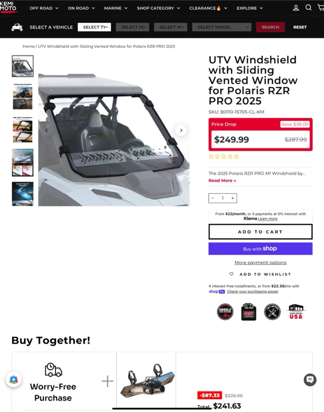 Selling a brand new Kemimoto UTV Windshield with Sliding Vented Window for Polaris RZR PRO 2025. It comes in its original box. Originally bought for $249.99. The SKU is B0110-15705-CL-KM.