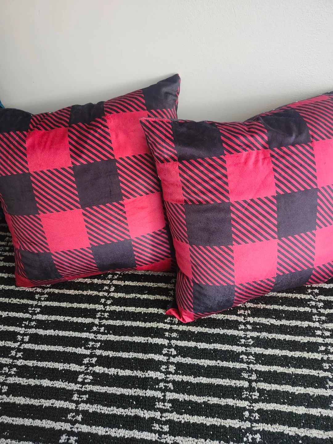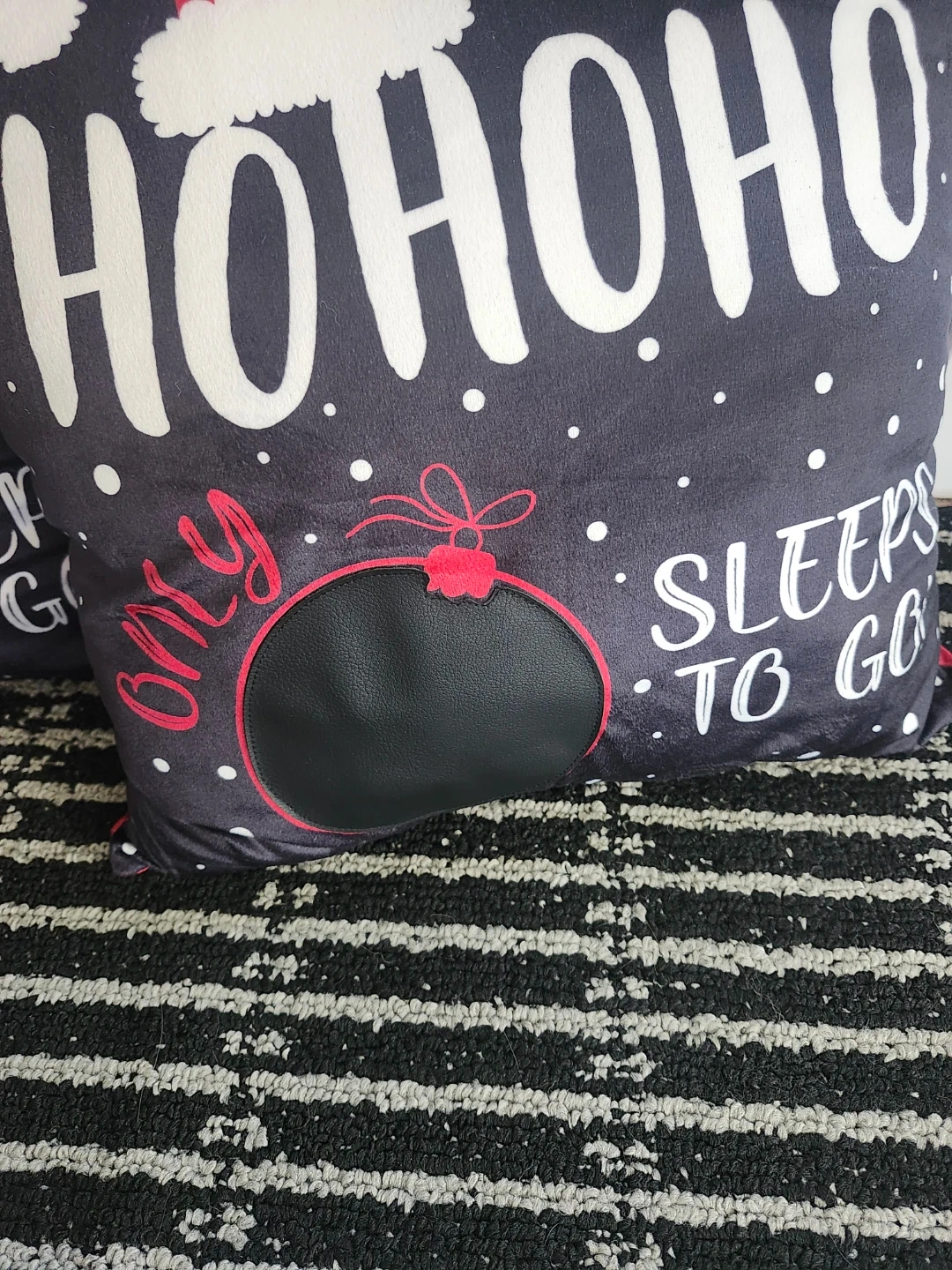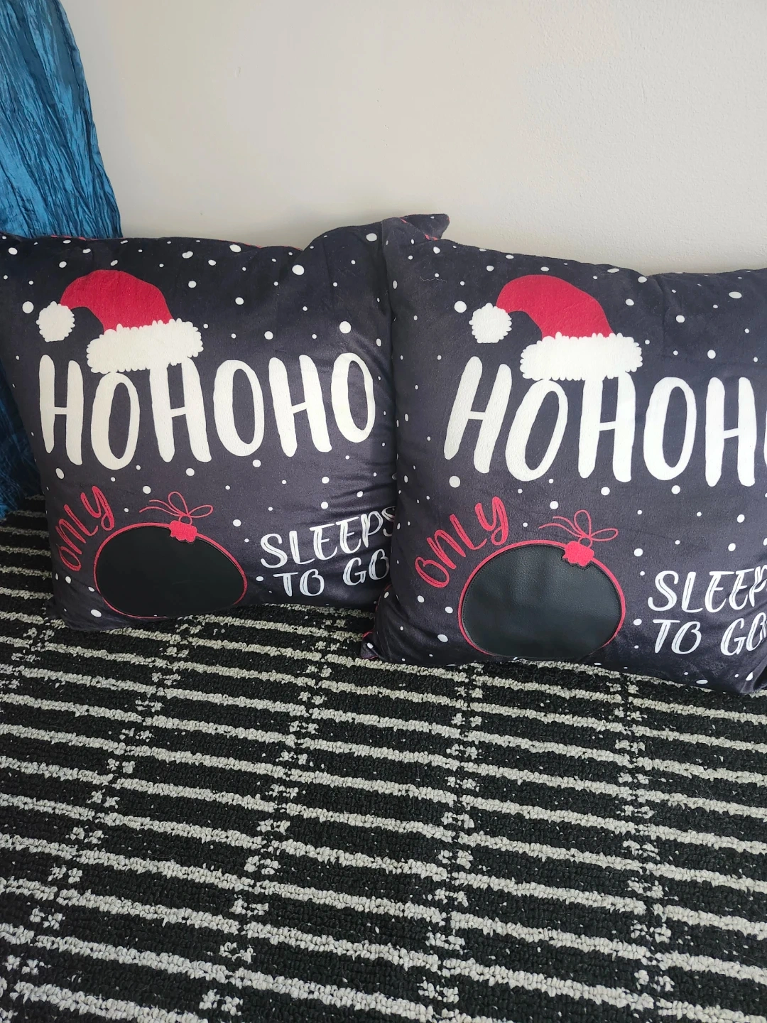 Here's a set of two festive Christmas holiday pillows! With "HO HO HO" and a Santa hat design, and the other is a red and black buffalo design ready to add some holiday cheer to your home.