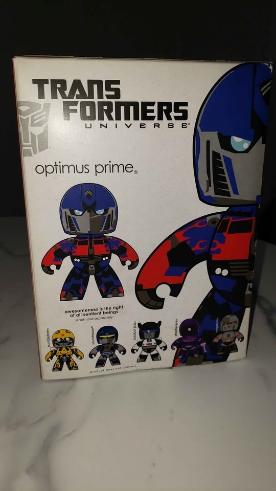 Transformers Universe Optimus Prime Mighty Muggs. Brand new and held in storage for many years. Needs a new home. Box a little scuffed up around the edges.