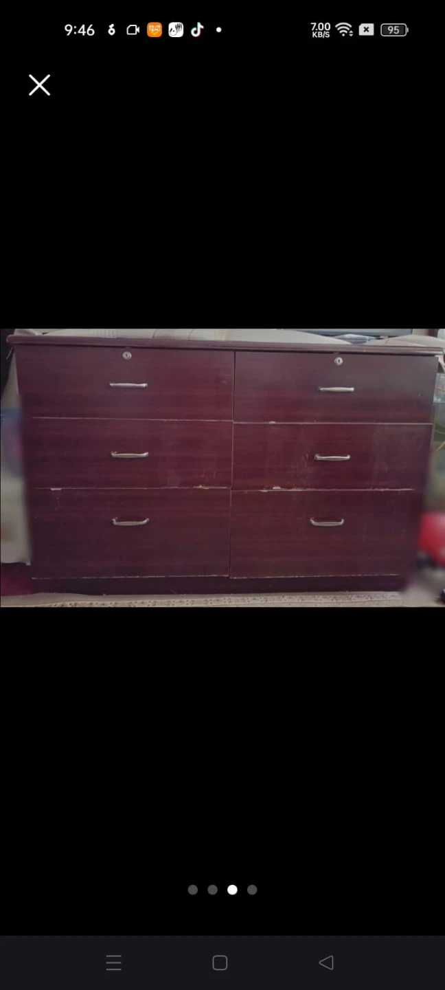 Here's a wooden dresser with six drawers with 2 drawers have lock system . It has some signs of use, as you can see in the pictures.
