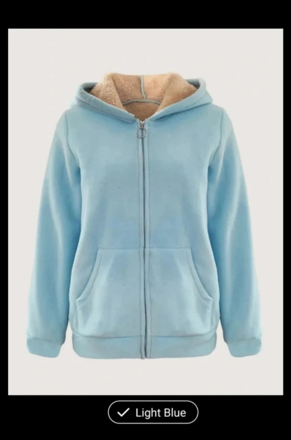 Selling a light blue zip-up hoodie. It's a cozy and stylish piece, perfect for layering or wearing on its own. The hoodie features a soft, plush lining for extra warmth and comfort.
