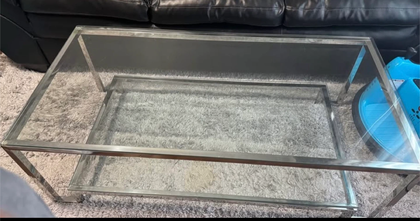 Selling a stylish coffee table with a glass top and chrome frame! It's in great shape and would look lovely in any living room. The table also has a lower shelf for extra storage or decor