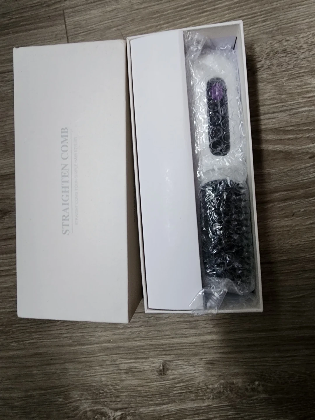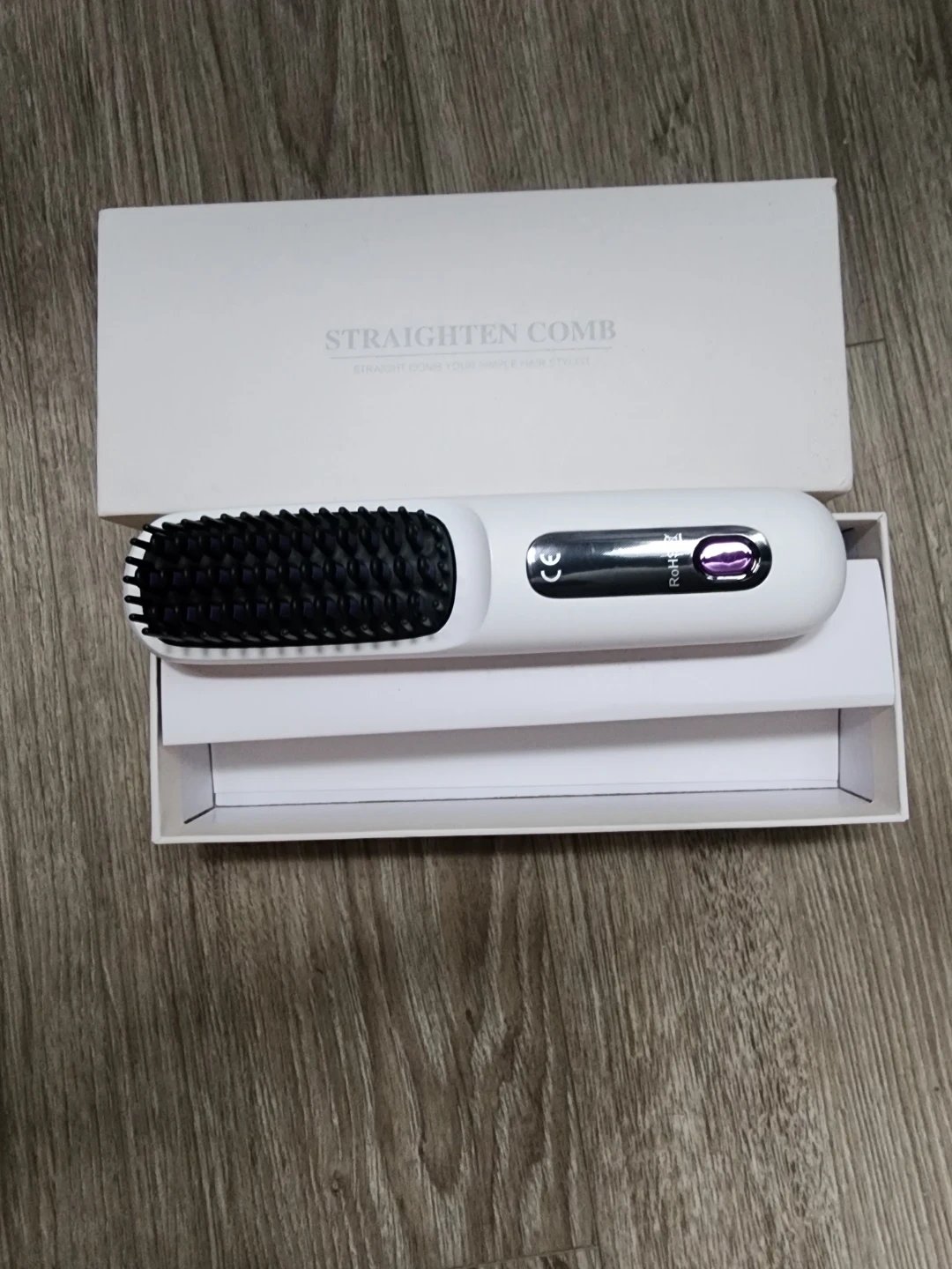 Selling a straighten comb for easy hair styling! It comes in its original box and looks to be in great condition. It's perfect for straightening your hair quickly and easily at home