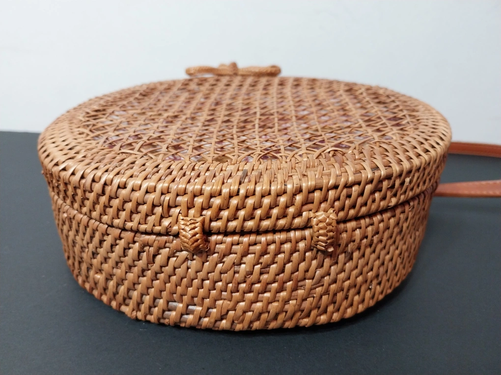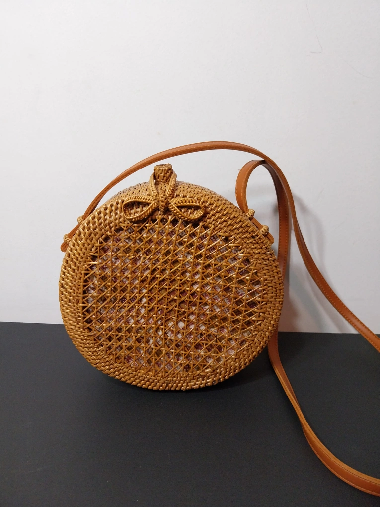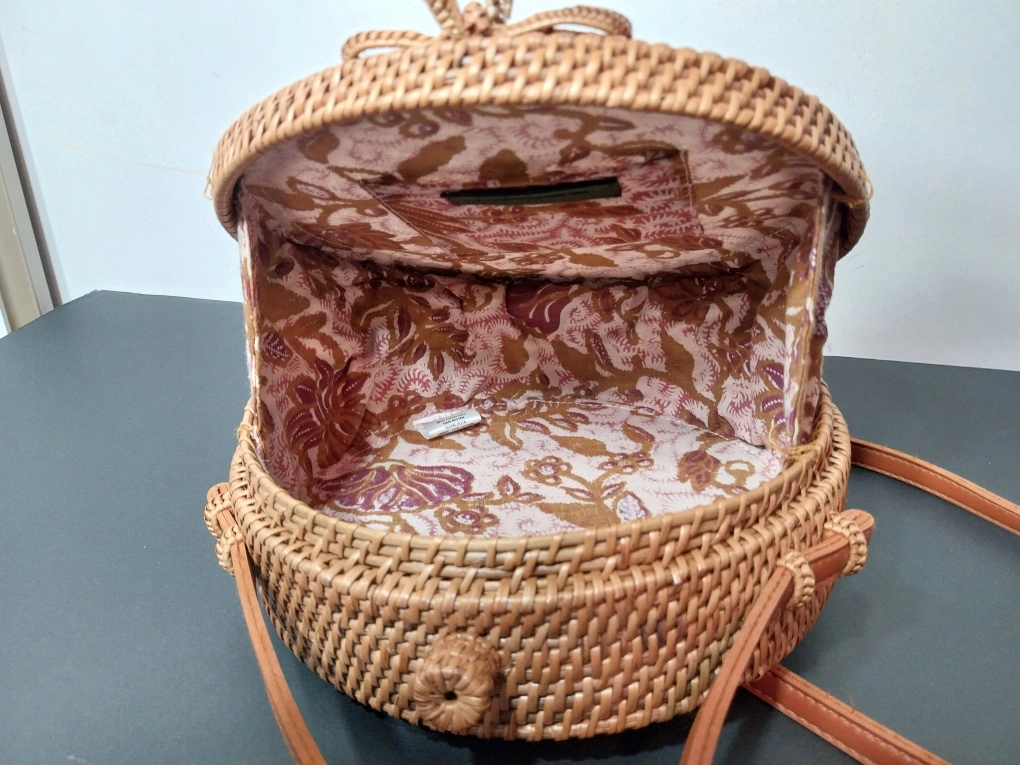 Anthropologie Round Woven Rattan Boho Crossbody Bag