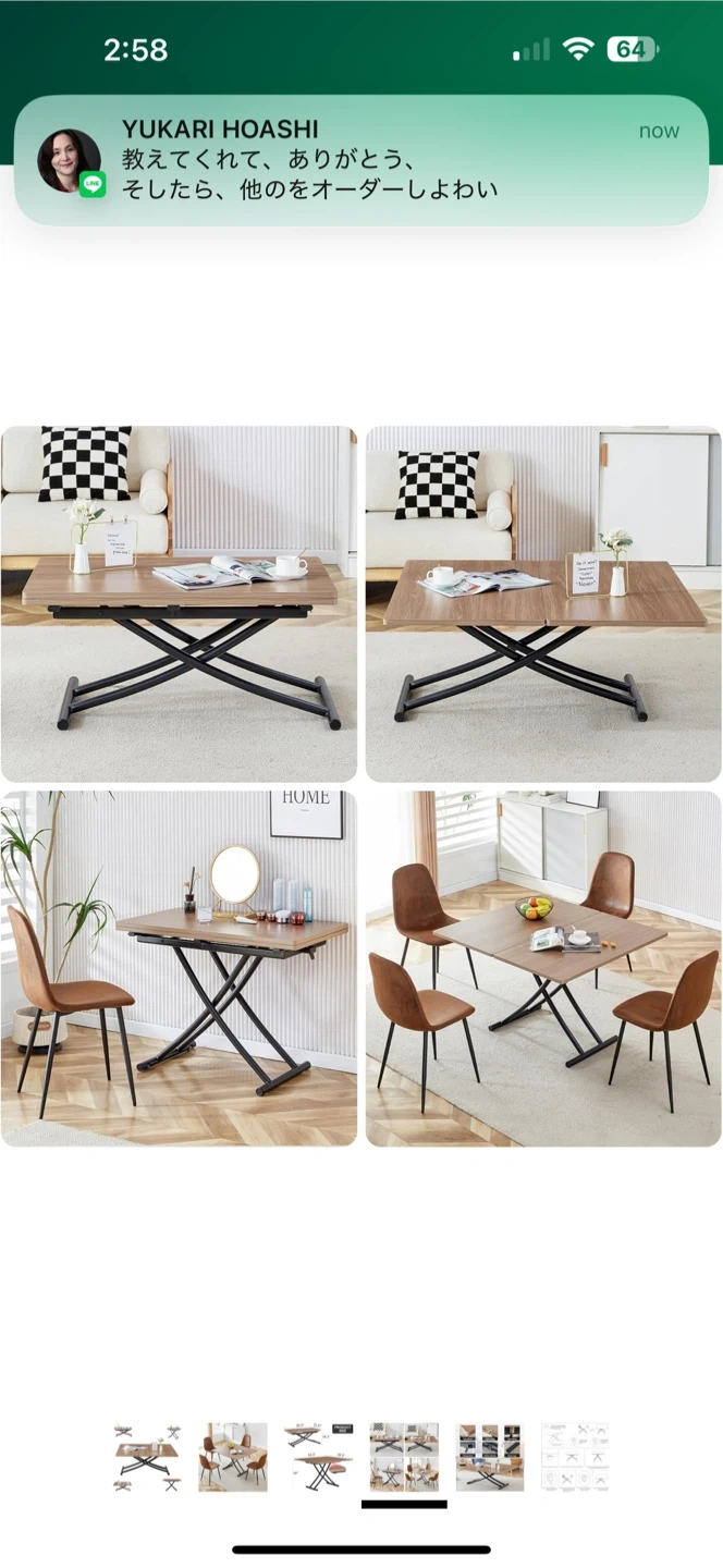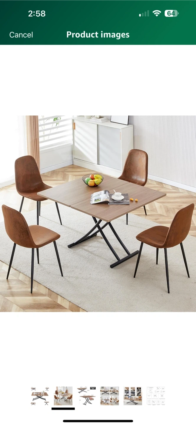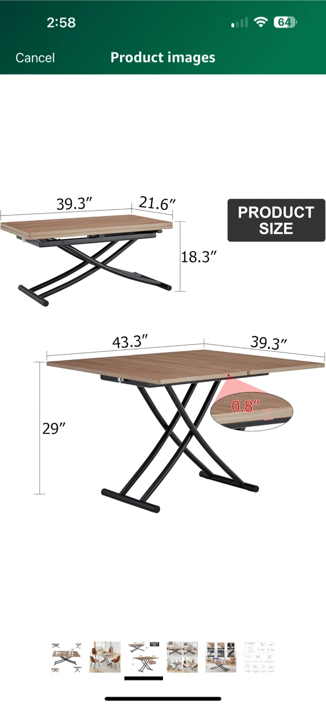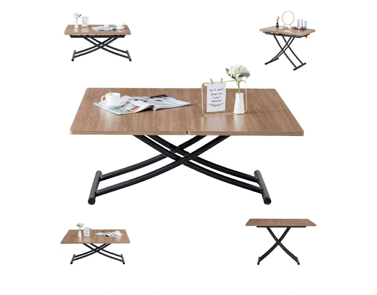 You can change the table top size, so it works as a coffee table or dining table. Wood-style top with black metal legs β modern look π Super useful for small spaces!