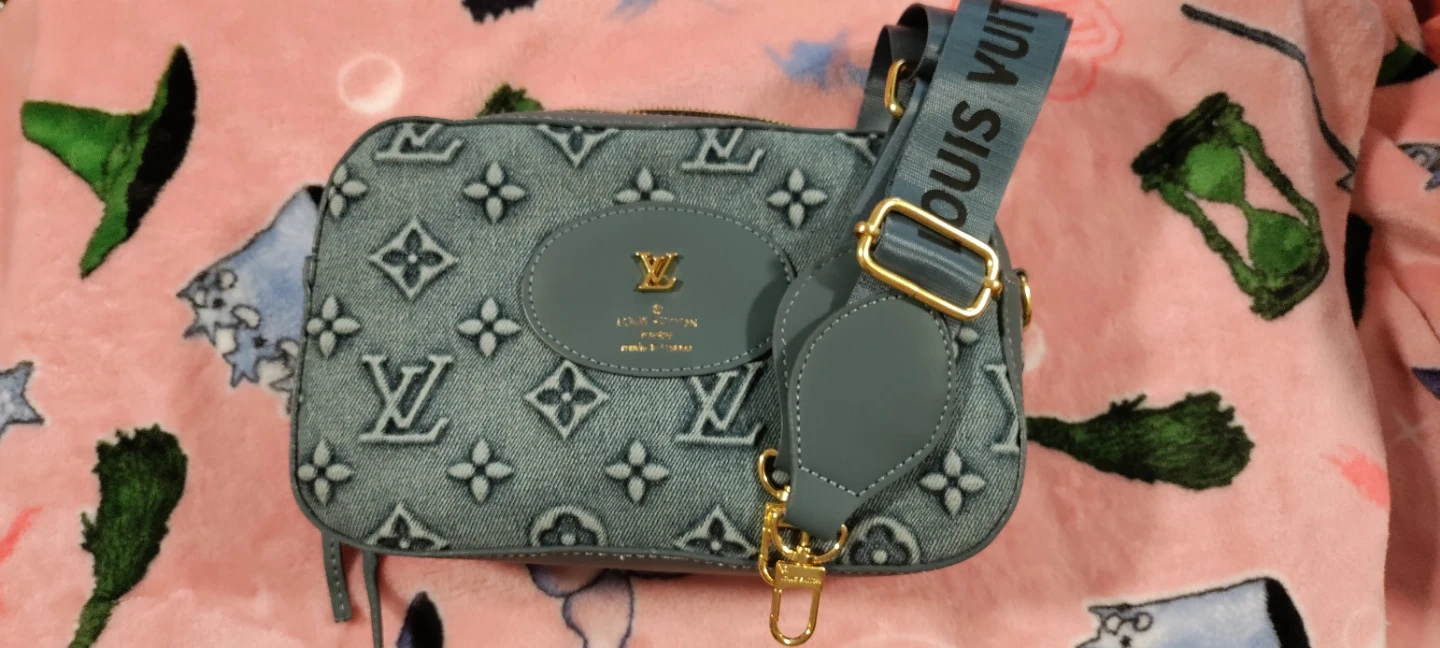 Selling a cute Louis Vuitton denim camera bag! The bag is in new condition and features the iconic LV monogram pattern in denim. It has a detachable strap and gold-tone hardware. Perfect for everyday use!