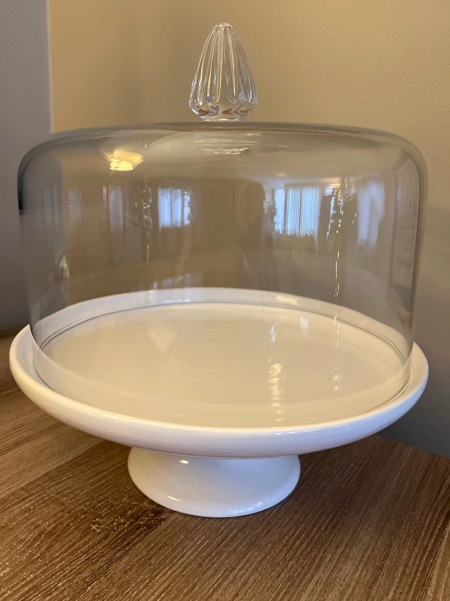 Looking to add a touch of class to your kitchen? Look no further! This cake stand is the perfect addition. If the ad is up, it's available!