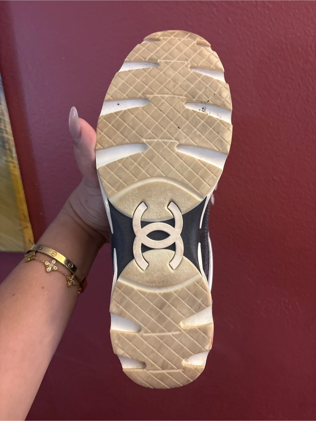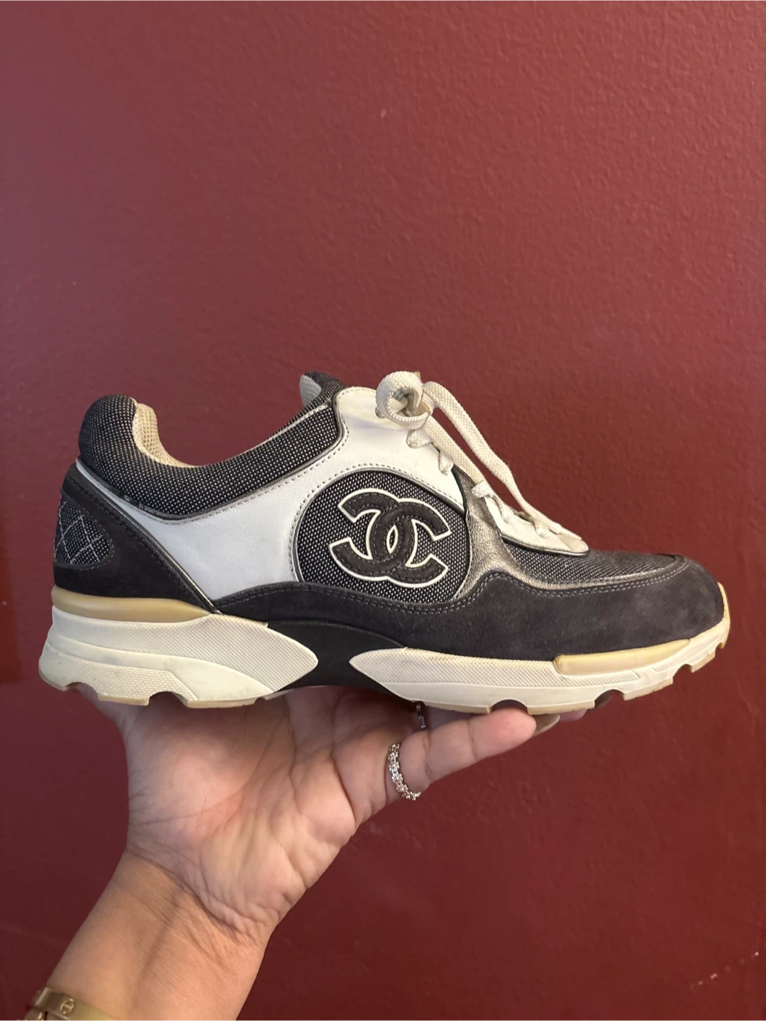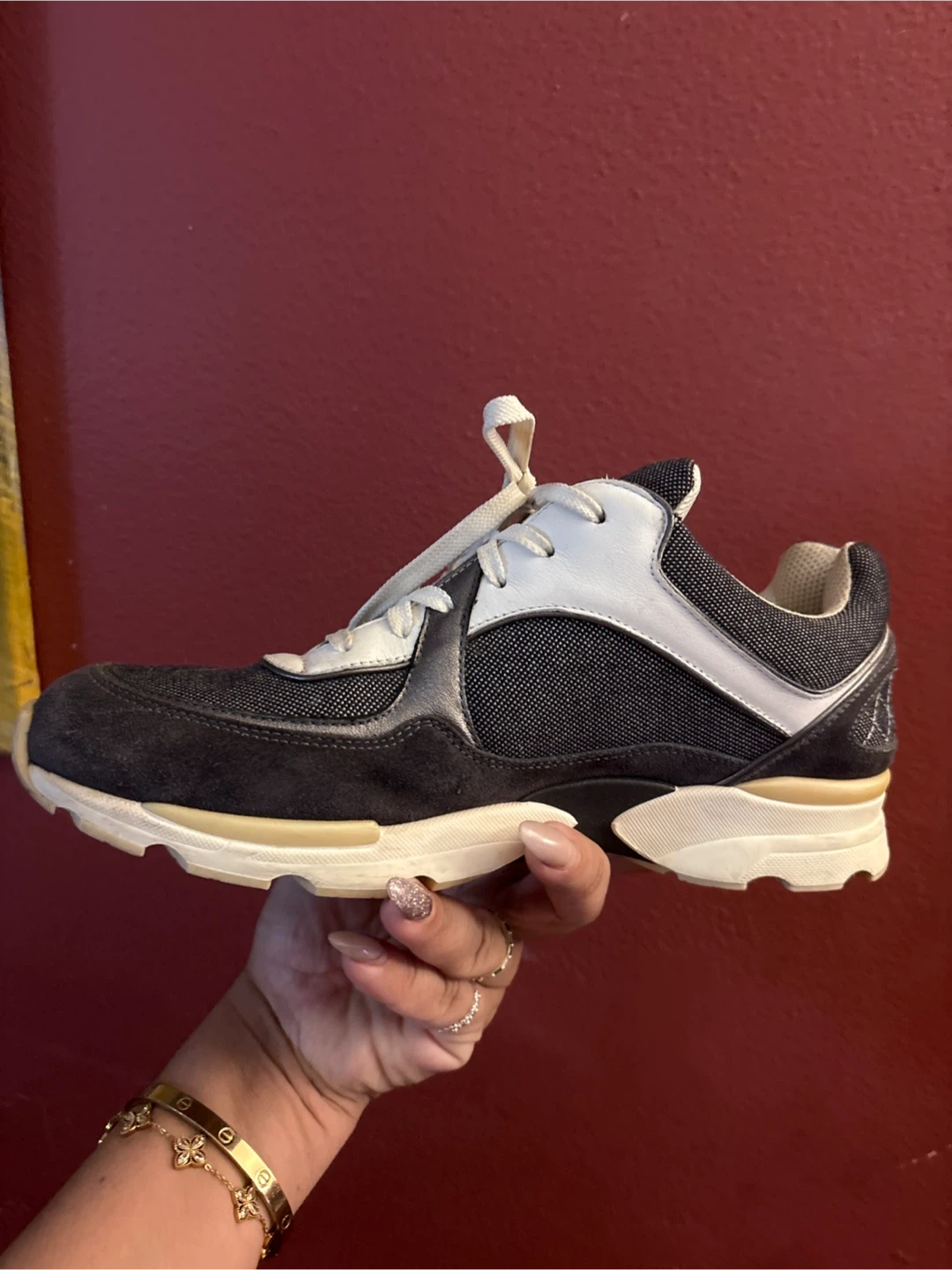 Selling a pair of Chanel sneakers in size 40. They show some signs of wear, but still have plenty of life left. Perfect for adding a touch of luxury to your casual look!