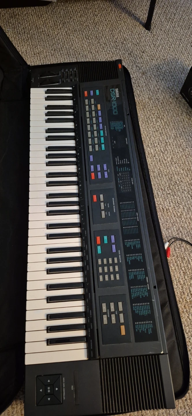 Selling a Yamaha DSR-1000 digital synthesizer keyboard. It's in good condition and ready for a new musician or producer! Comes with a case for easy transport and storage