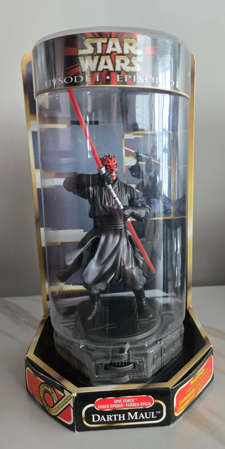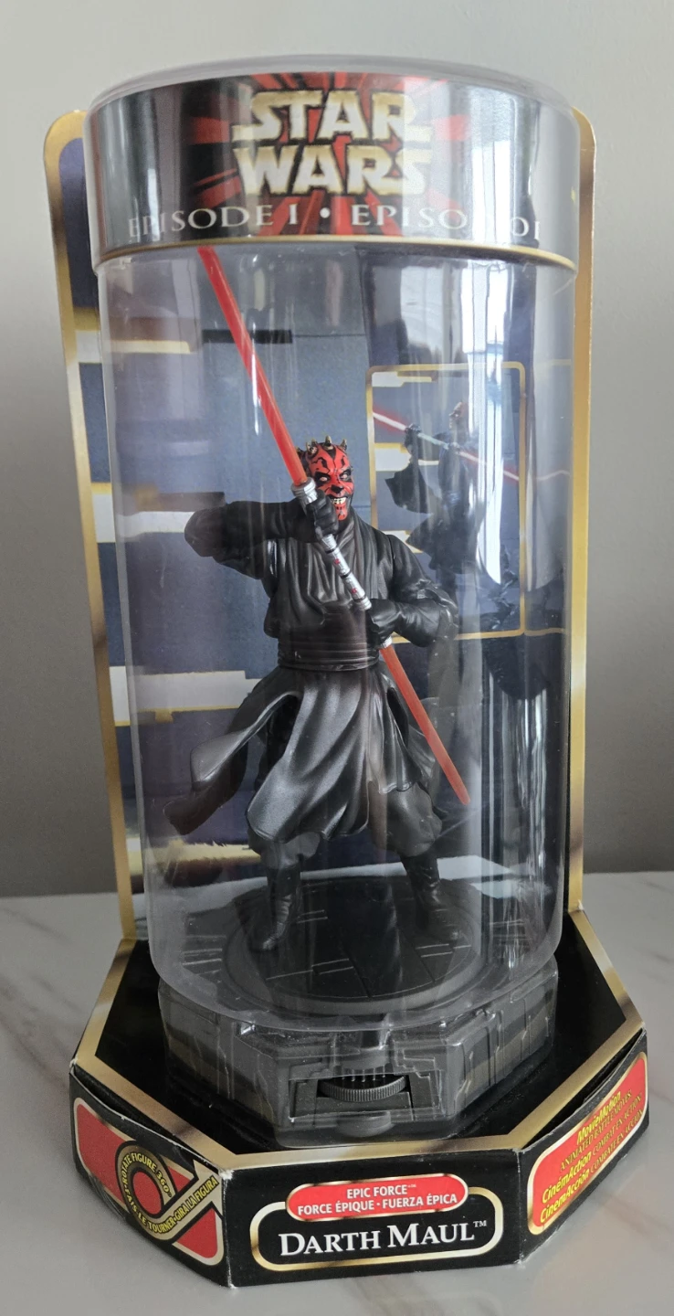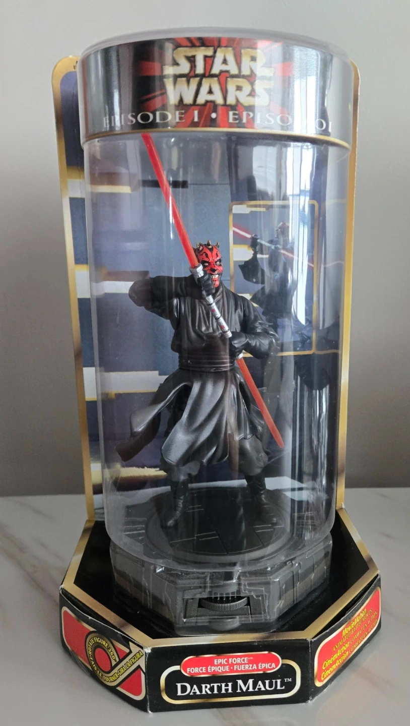 Selling a Star Wars Episode 1 Darth Maul Epic Force figure! This figure is still in its original packaging. It recreates the battle place Darth Maul vs Qui-Gon Jinn and Obi-Wan Kenobi