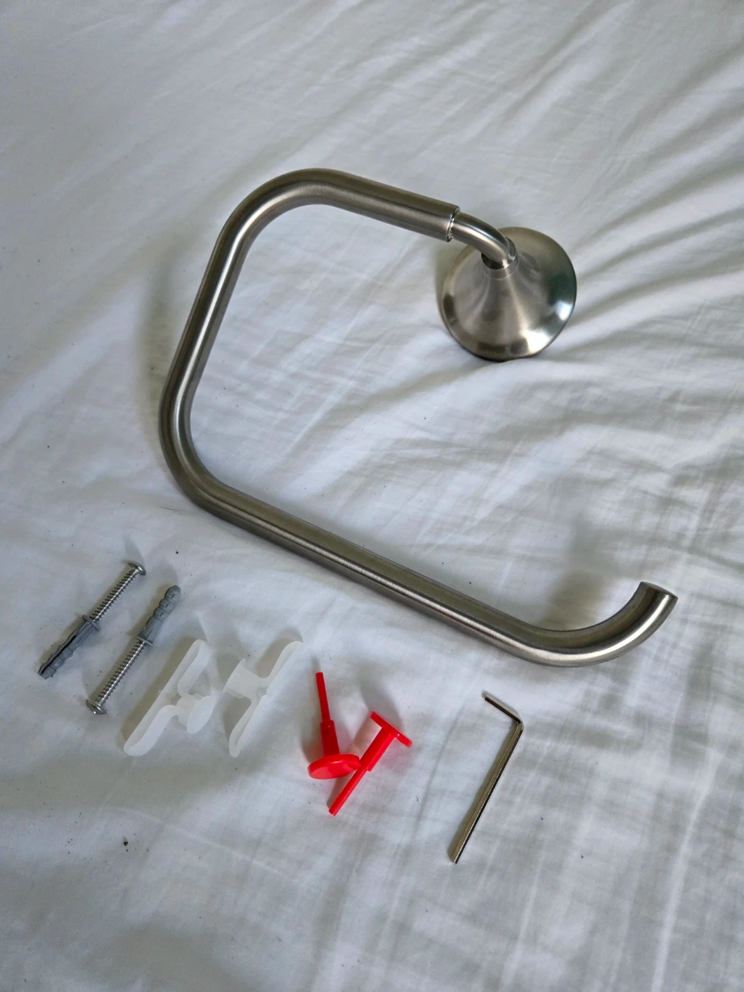 More info here: https://www.kohler.ca/en/products/bathroom-accessories/shop-bathroom-accessories/tone-towel-ring-27428?skuId=27428-BN