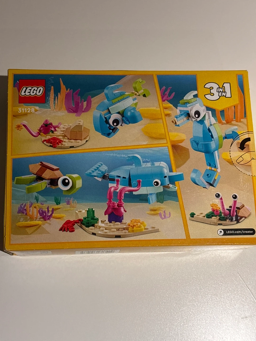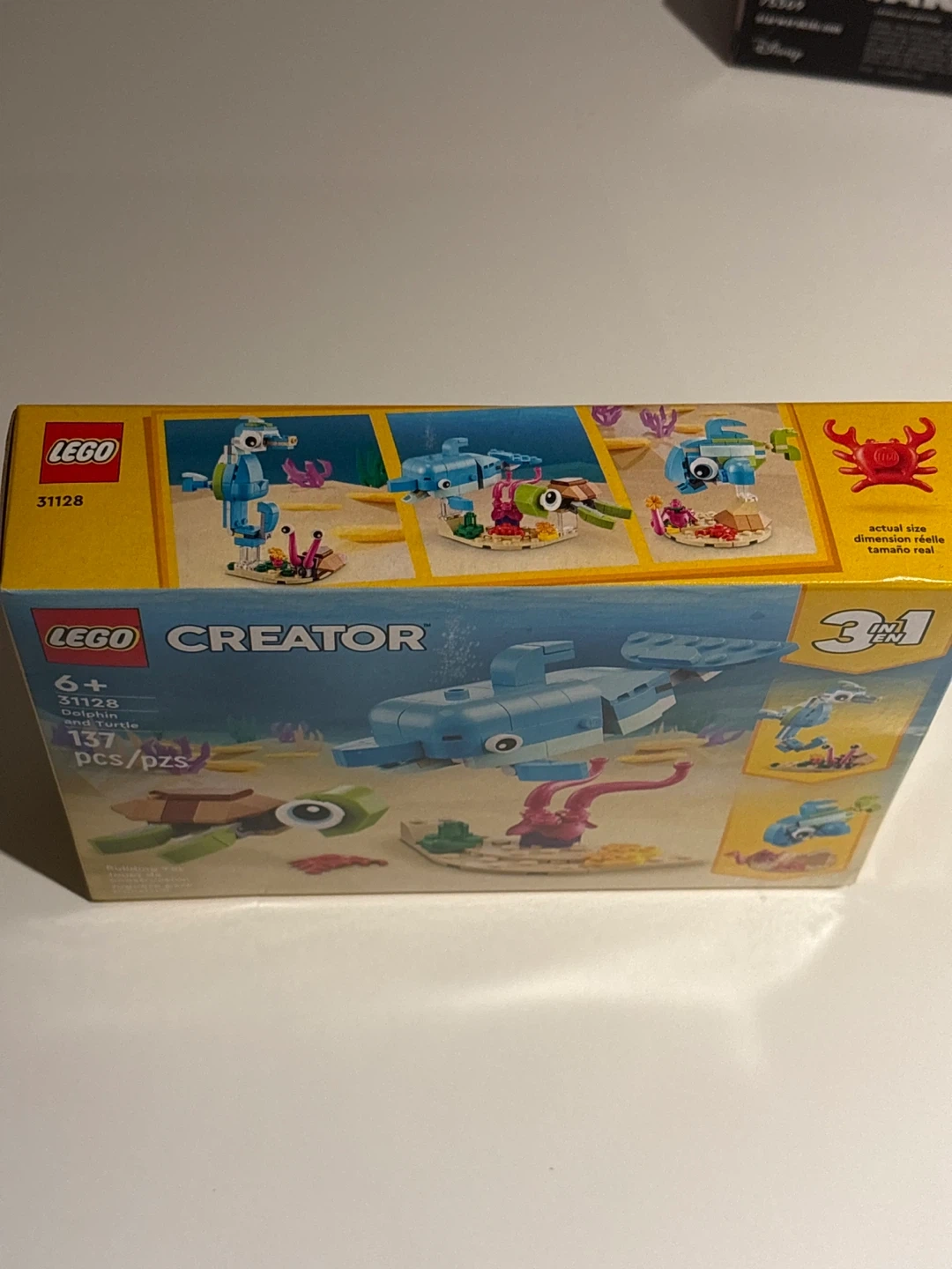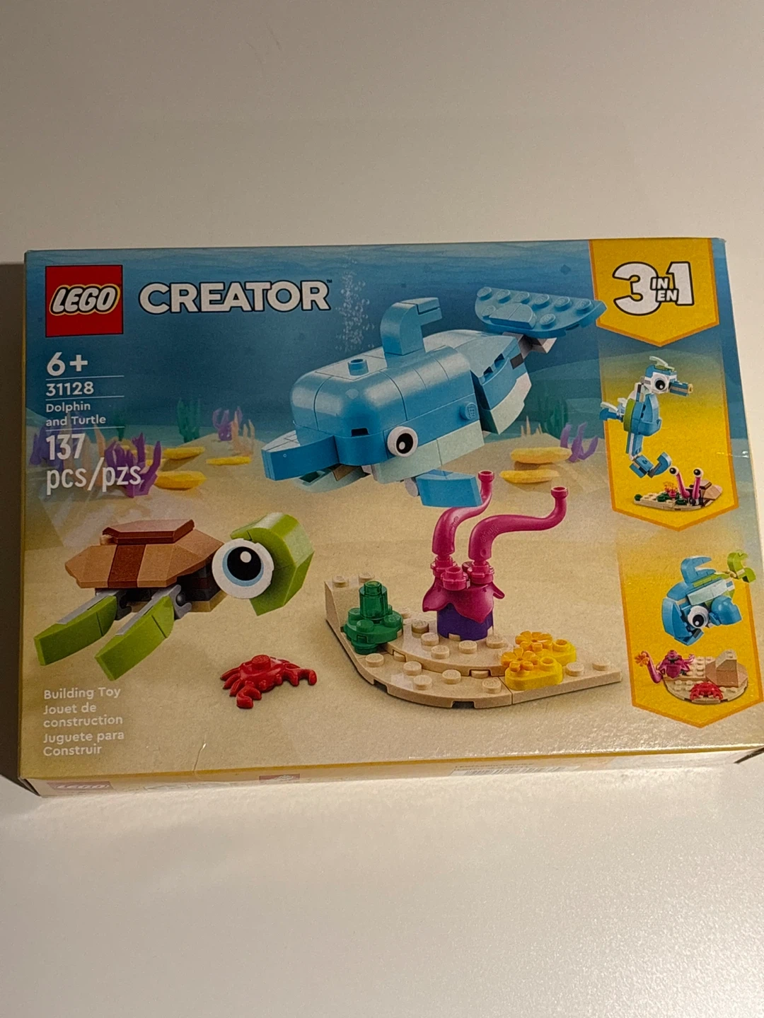 Selling a LEGO Creator 3in1 set (Dolphin and Turtle, model 31128)! This set allows you to build three different sea creatures. Recommended for ages 6+ and contains 137 pieces. Great for creative play!