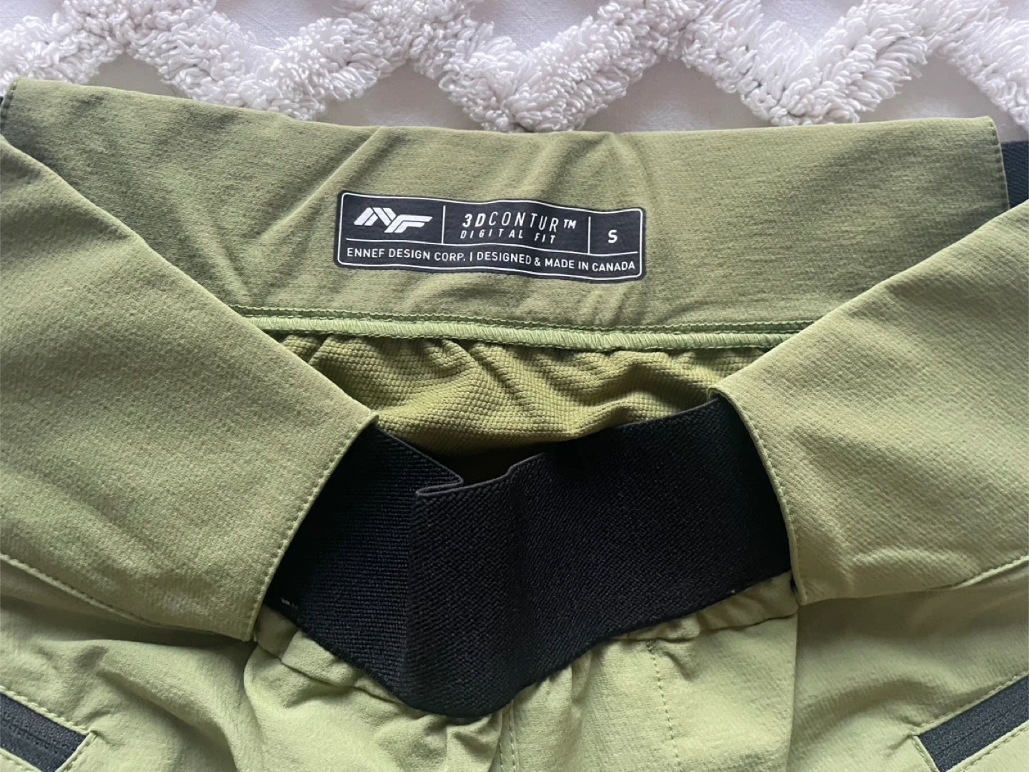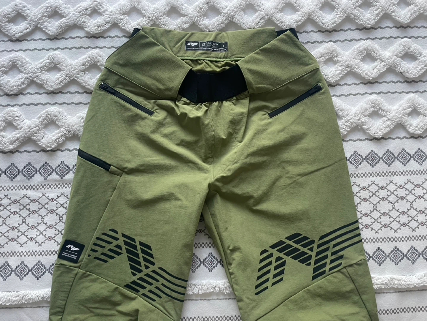 Selling a pair of Ennef 3D Contur pants in size small. They're a stylish green colour and made in Canada!
