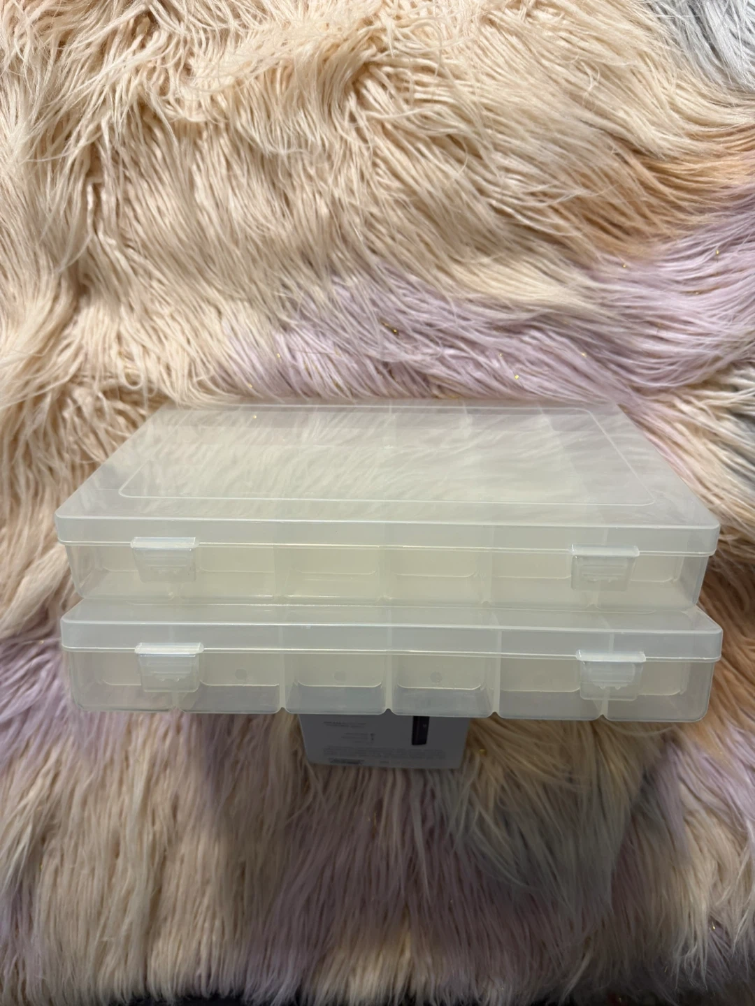 Selling two clear plastic organizer cases. 36 slots each. They're perfect for storing small items like beads, jewelry, or craft supplies. Keep your space tidy with these handy organizers!