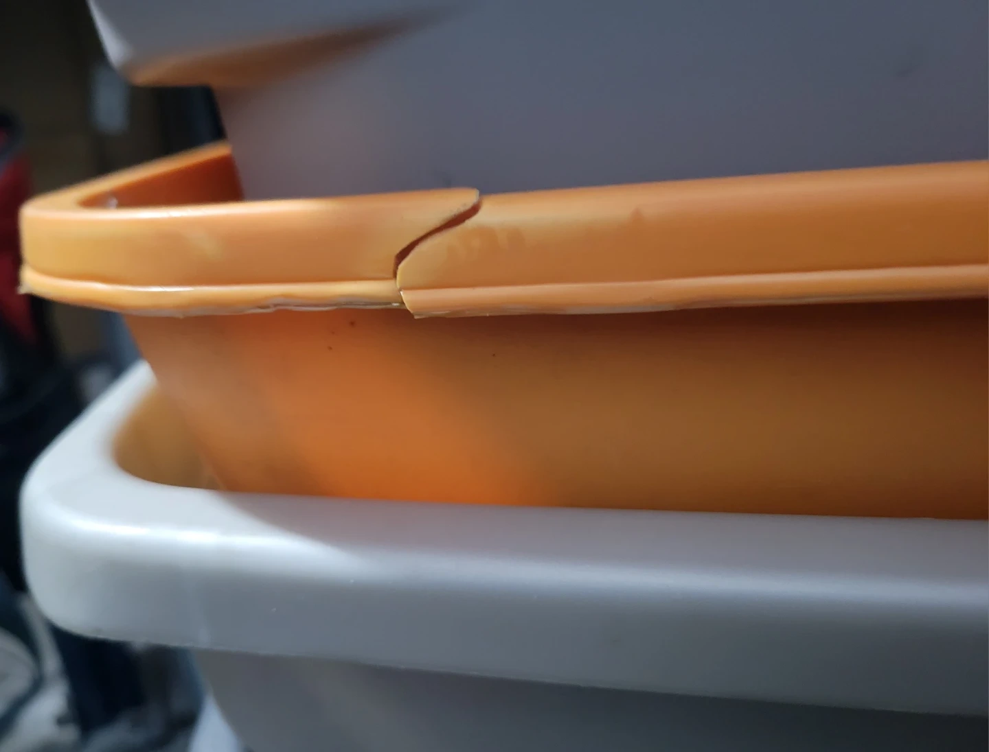 Selling a collection of used storage totes in various colors, including orange, clear, gray, lime green, and teal. They come in different sizes, perfect for organizing your belongings. Please note that some totes have minor cracks.