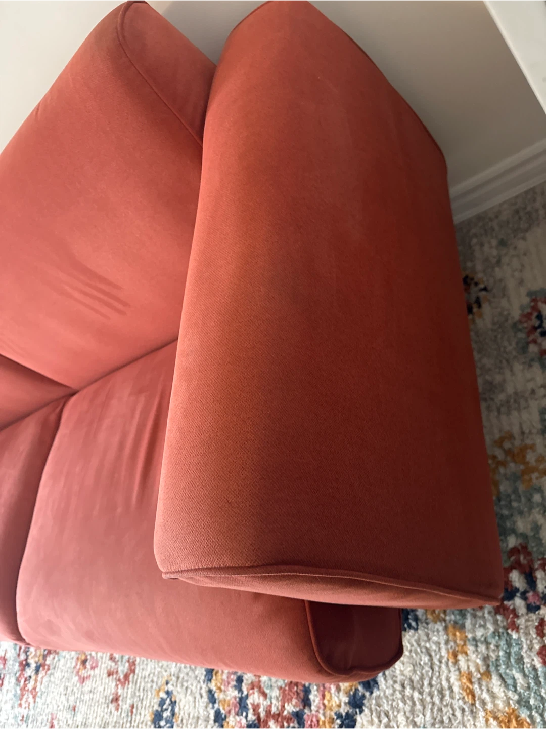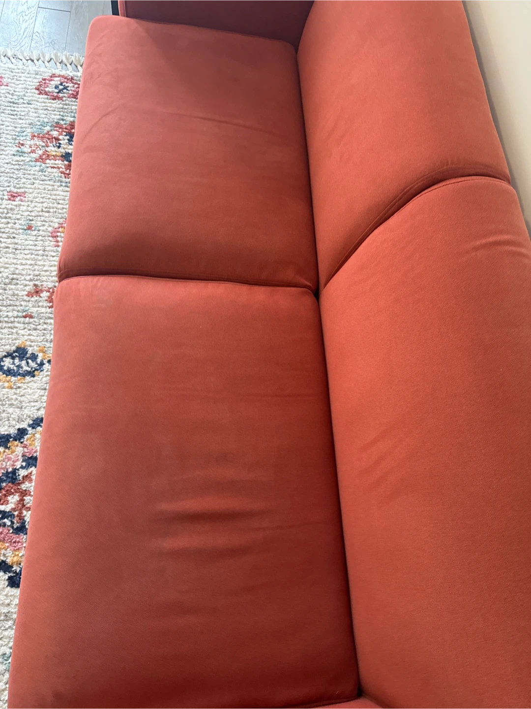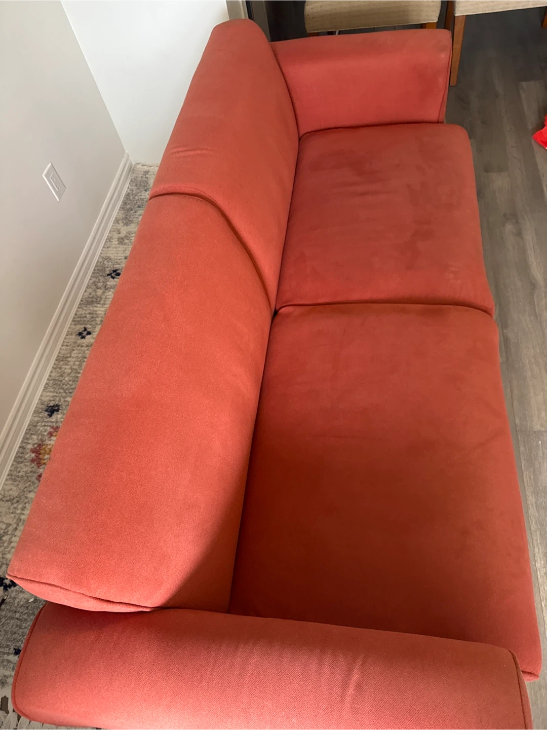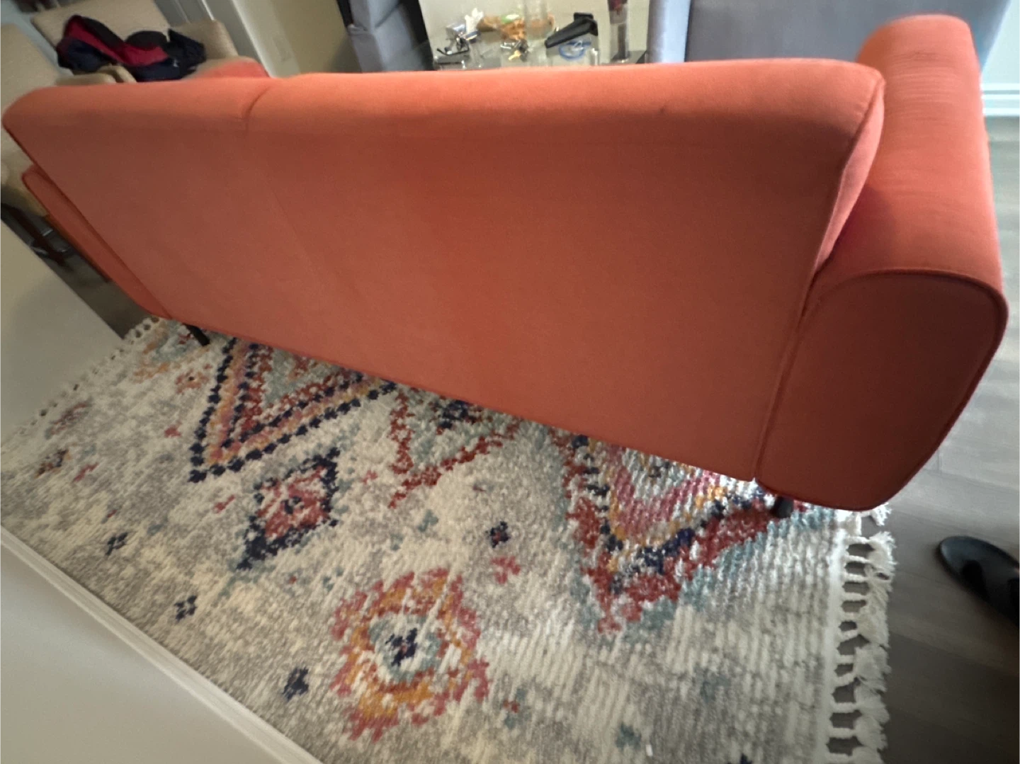 Orange Mid-Century Modern Sofa IKEA Selling a comfy orange sofa! It's in good condition and would be a great addition to any living room or den pet and smoke free moving sale length 5 1/2 with3 1/2 height 2 1/2