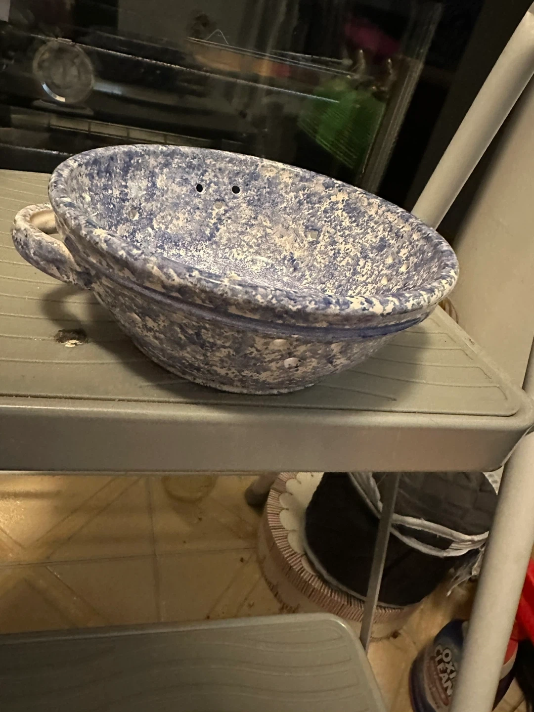 Selling a lovely blue and white berry bowl. It's in excellent condition and ready to help with your cooking needs!