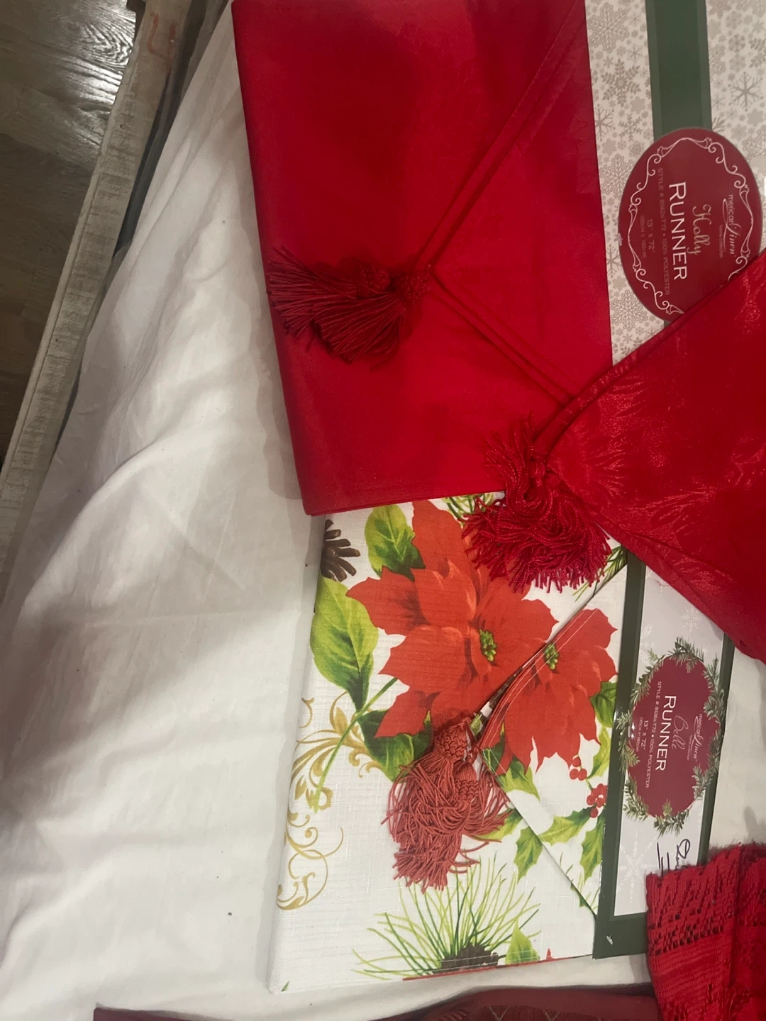 I'm selling a variety of Holiday Style table runners! There's a red lurex runner, along with various other festive designs. Perfect for adding a touch of holiday cheer to your home decor $5 each
