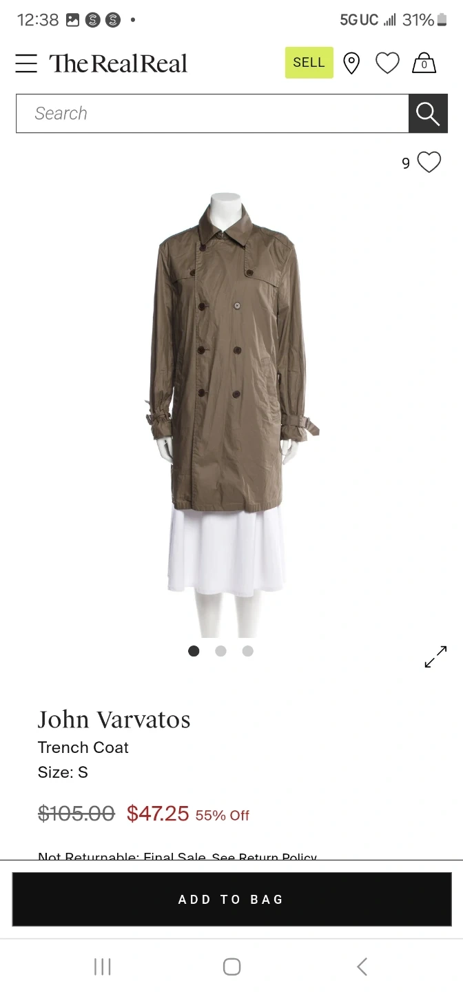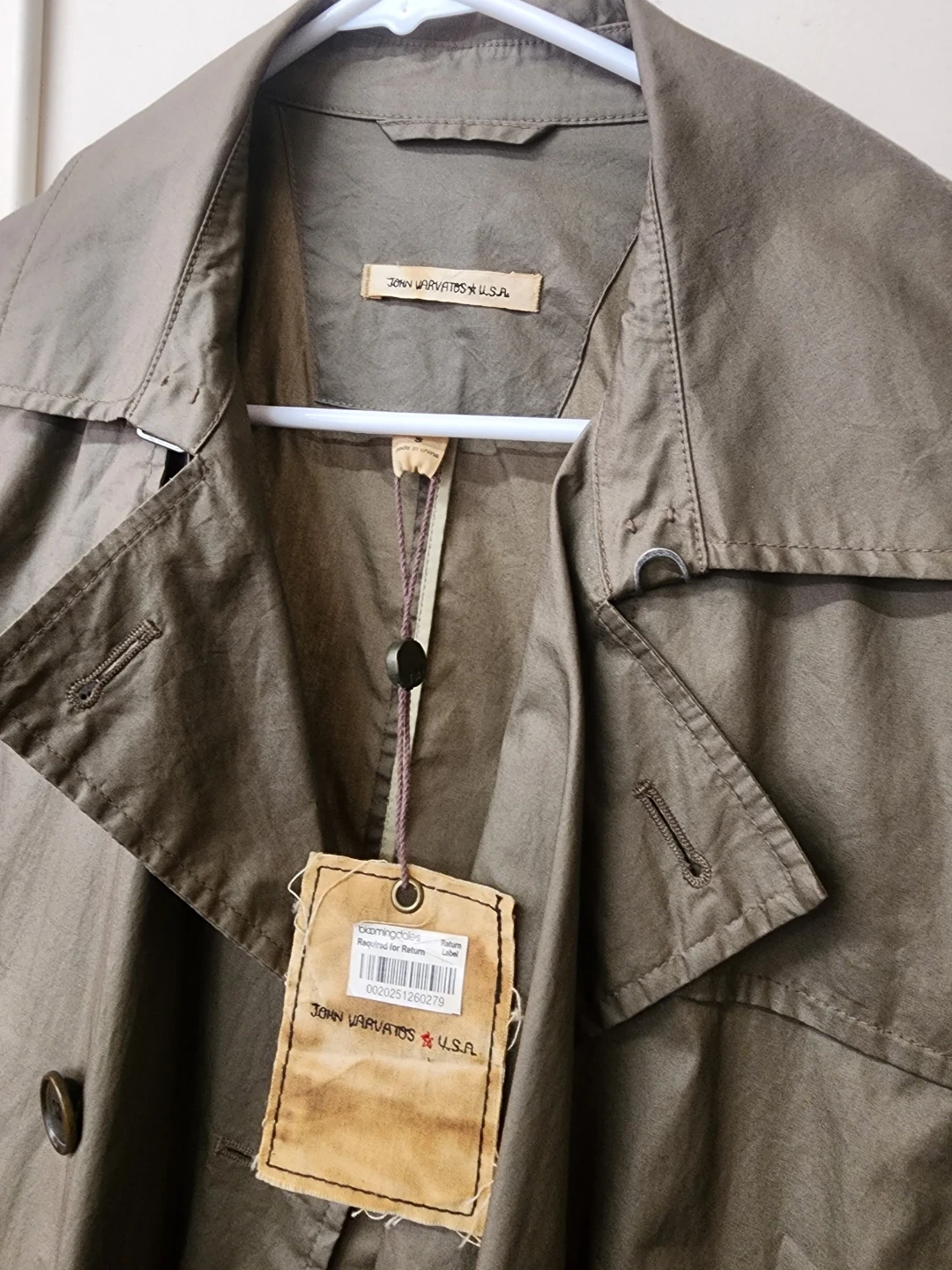 Selling a John Varvatos U.S.A. trench coat in size small. It's a stylish and versatile piece that's perfect for layering. The coat is in new condition and ready for a new owner!