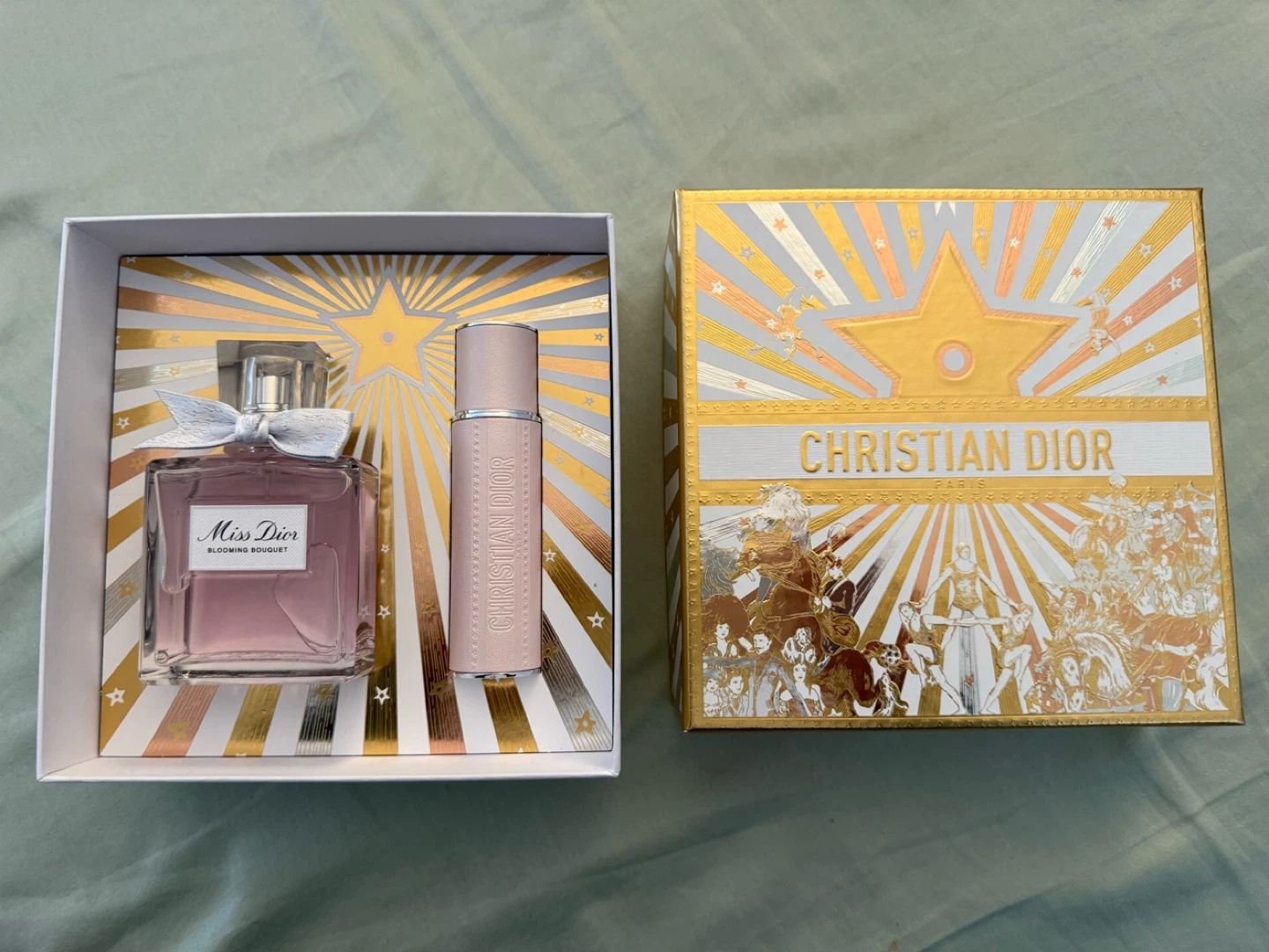 Selling a Christian Dior Miss Dior Blooming Bouquet set! It includes the perfume and a travel-size spray. The set comes in its original box, perfect for gifting or treating yourself.