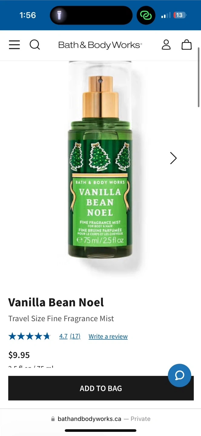 Selling a Bath & Body Works Vanilla Bean Noel fine fragrance mist. Travel size.