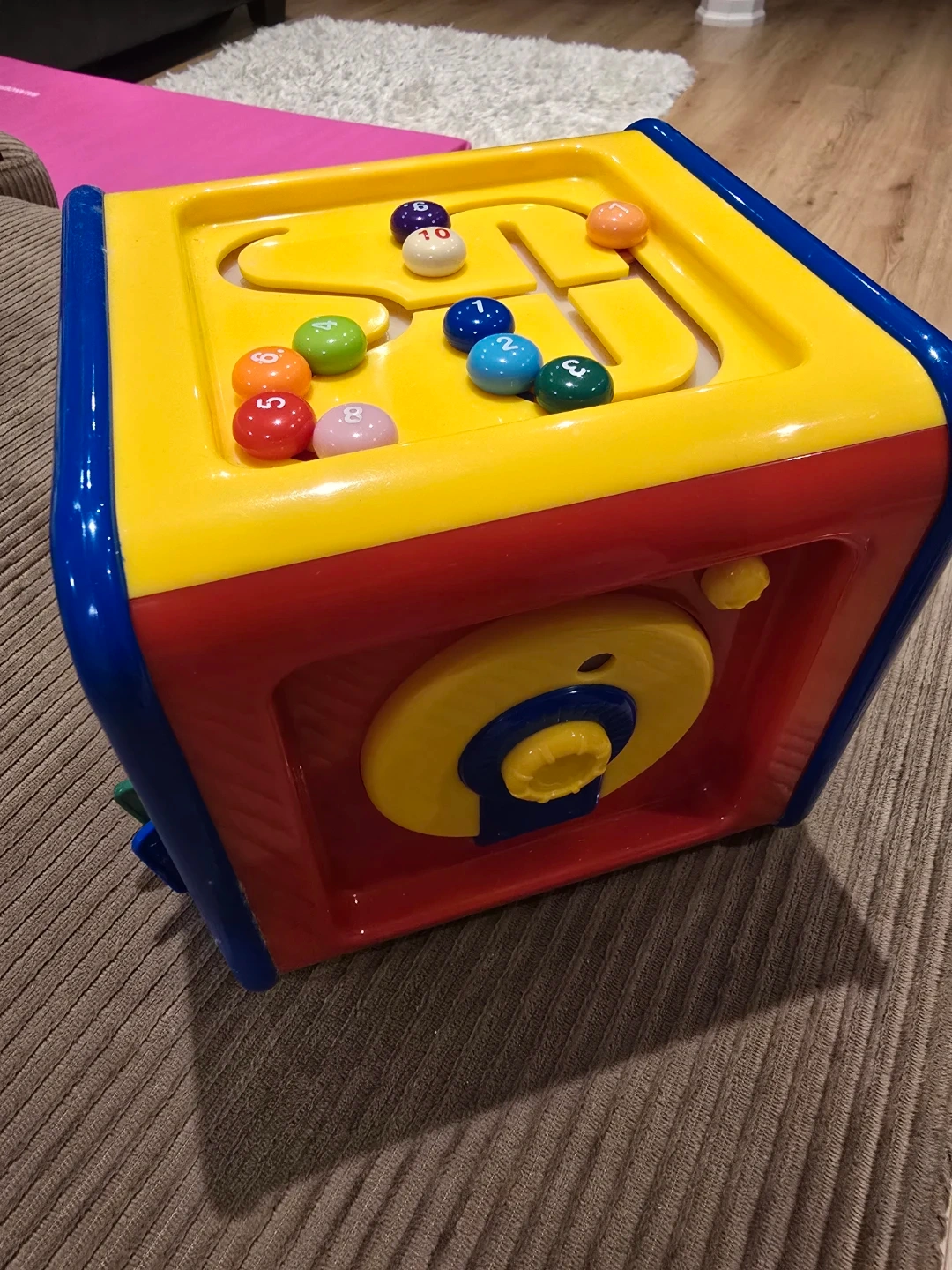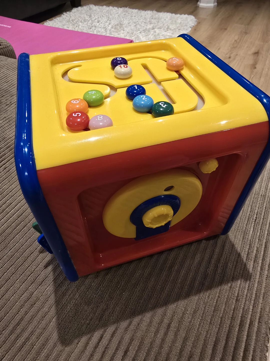This colourful activity cube from Playskool is perfect for little ones who are exploring and learning! It features a variety of interactive elements, including a piano with a bear, a ball maze, gears, and other fun activities to keep your child engaged. It's in good used condition and ready for a new home!