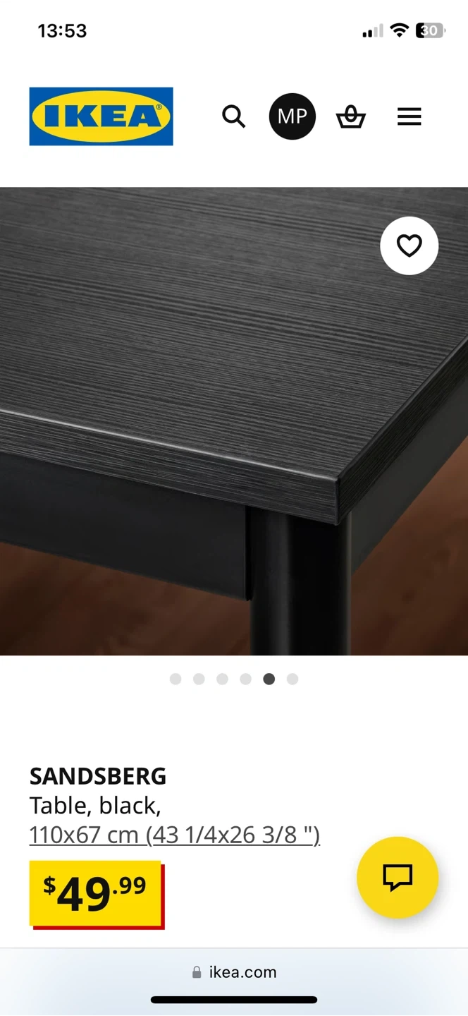 IKEA SANDSBERG | TÄRENDÖ Black Table - 43 1/4x26 3/8"