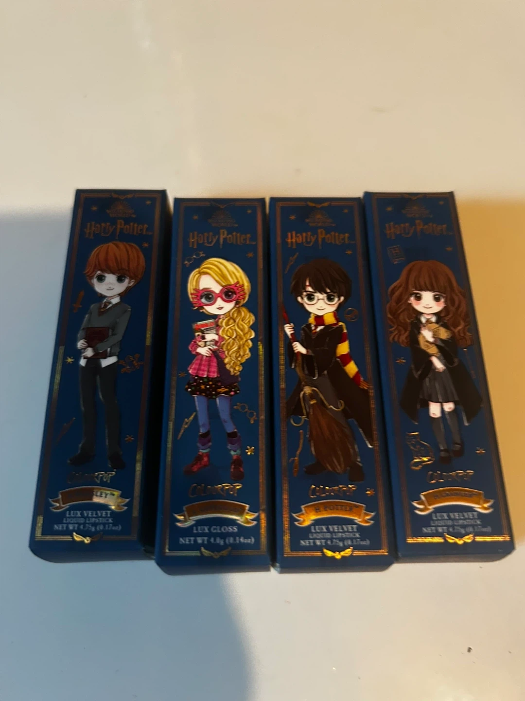 Selling four ColourPop Lux Velvet lipsticks from the Harry Potter collection! Includes Weasley, Lovegood, H. Potter, and H. Granger. Each lipstick contains 4.2g (0.15oz) of product. Perfect for any Harry Potter fan!
