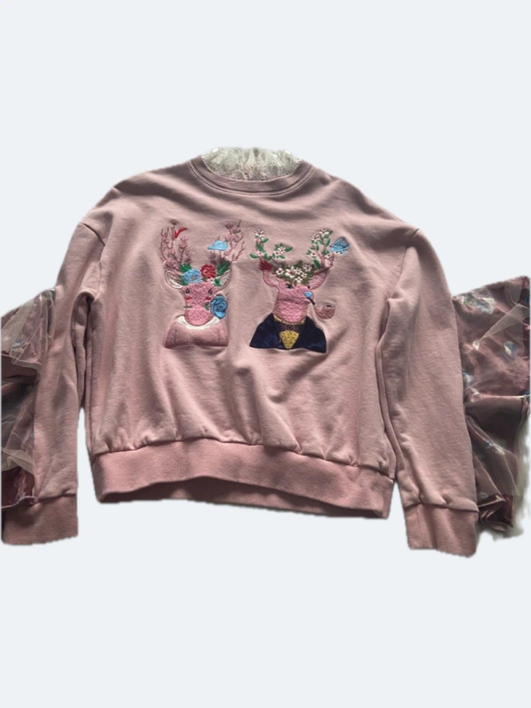 Check out this super cute pink sweatshirt from Color Mikibana! It’s a size 165/88A and has a really unique design. Perfect for adding a fun, whimsical touch to your outfit.
